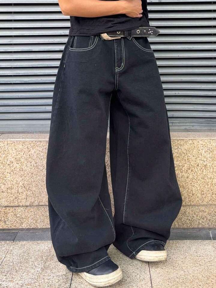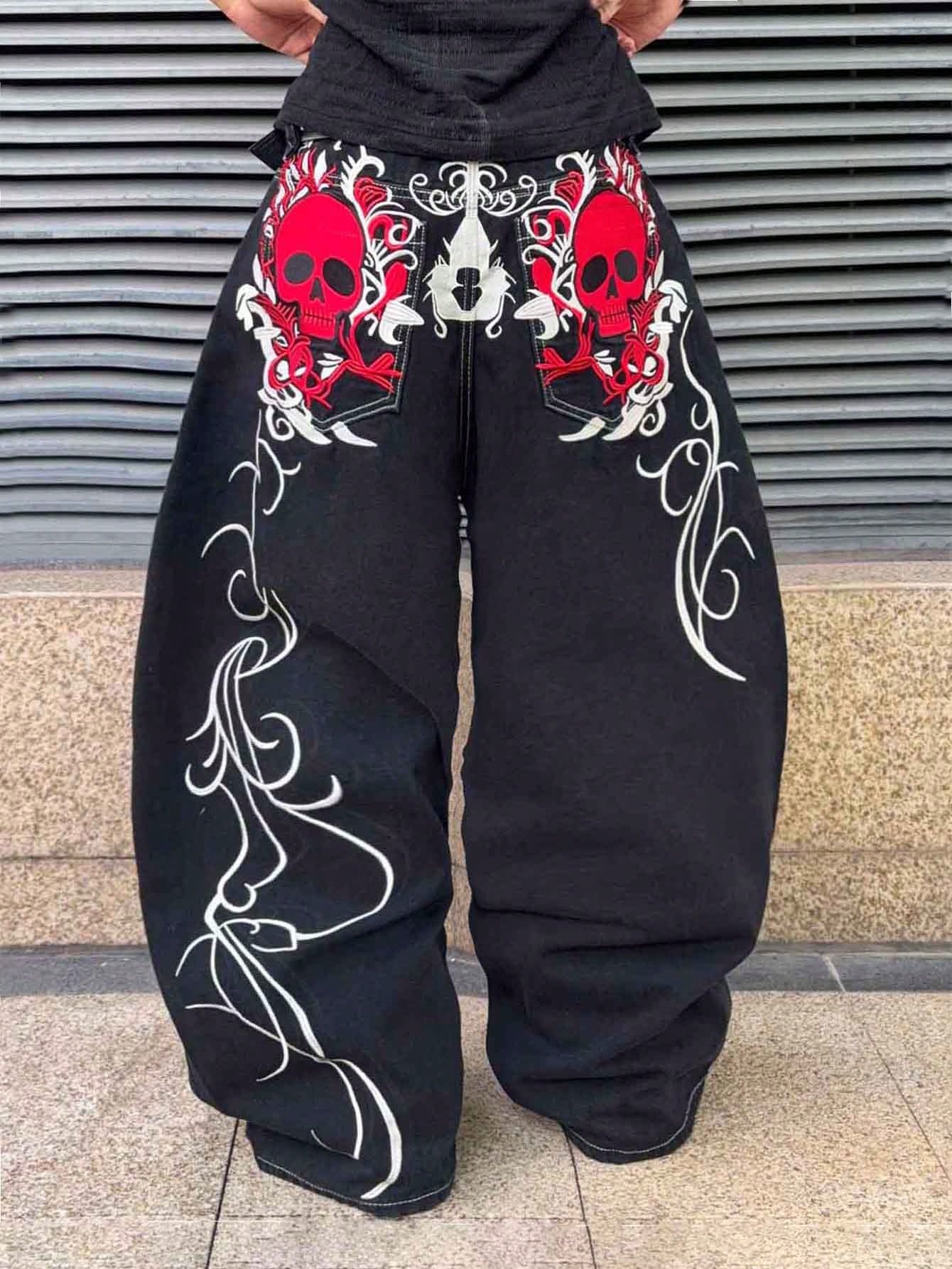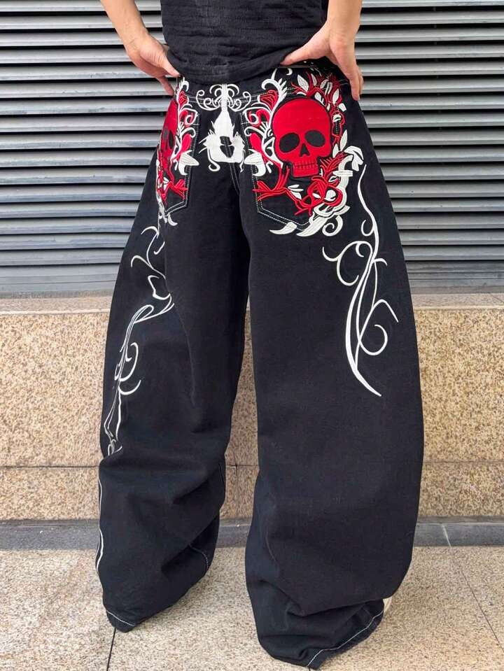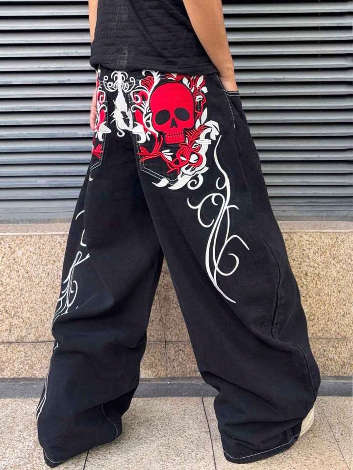 Street Life Jeans de pierna curva con ajuste holgado y patrón bordado para hombre
