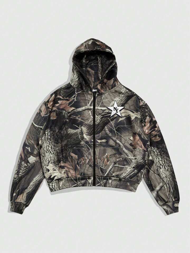 Street Life Sudadera con capucha con estampado de camuflaje de ramas y cruz de moda para hombres para el otoño