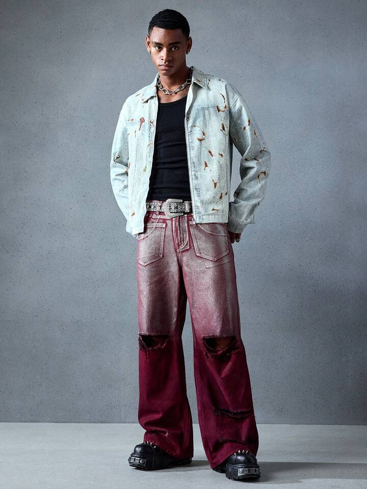 Street Life Jeans de mezclilla desgastados con degradado de moda para hombres