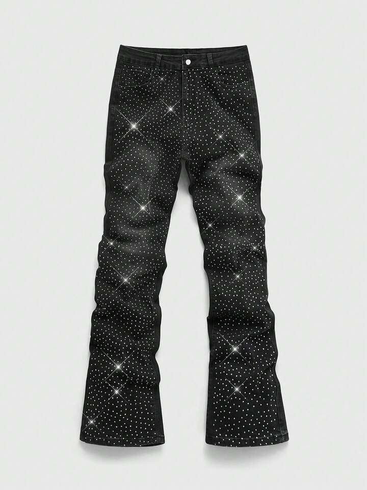 Street Life Jeans acampanados con adornos de rhinestones de moda para hombres