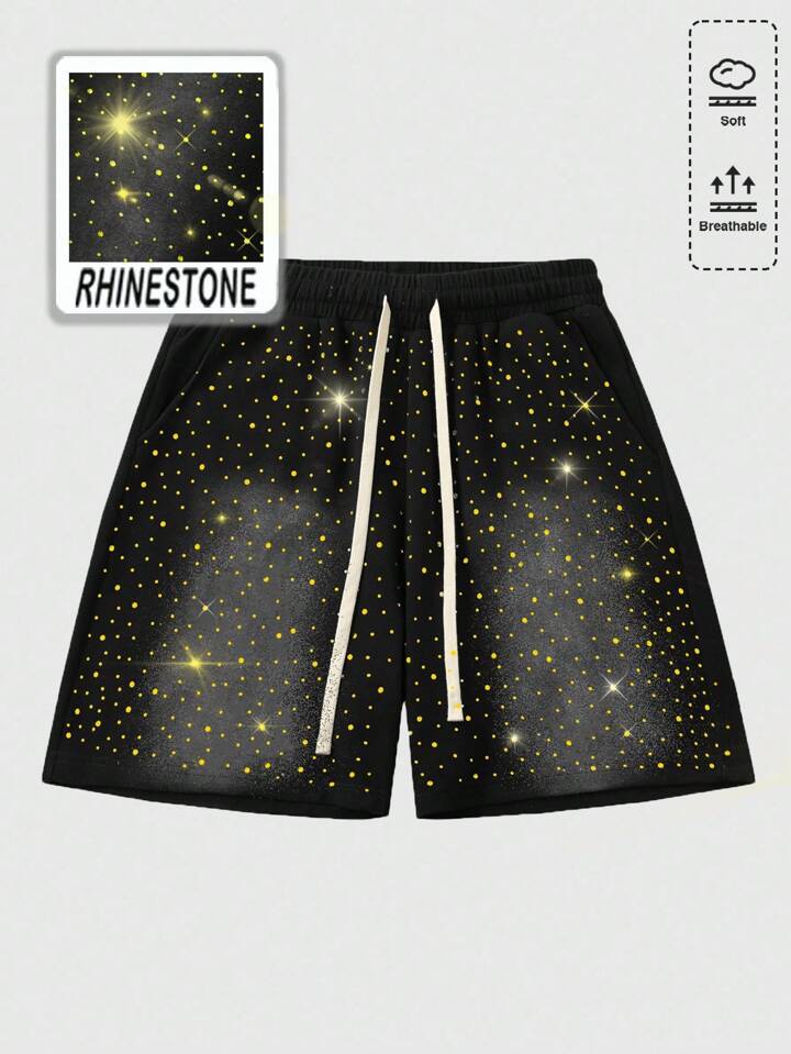 Street Life Pantalones cortos casuales de verano para hombres con estampado de cebra con diamantes brillantes