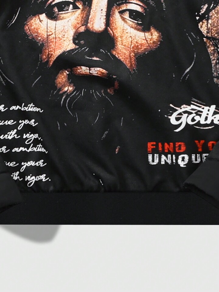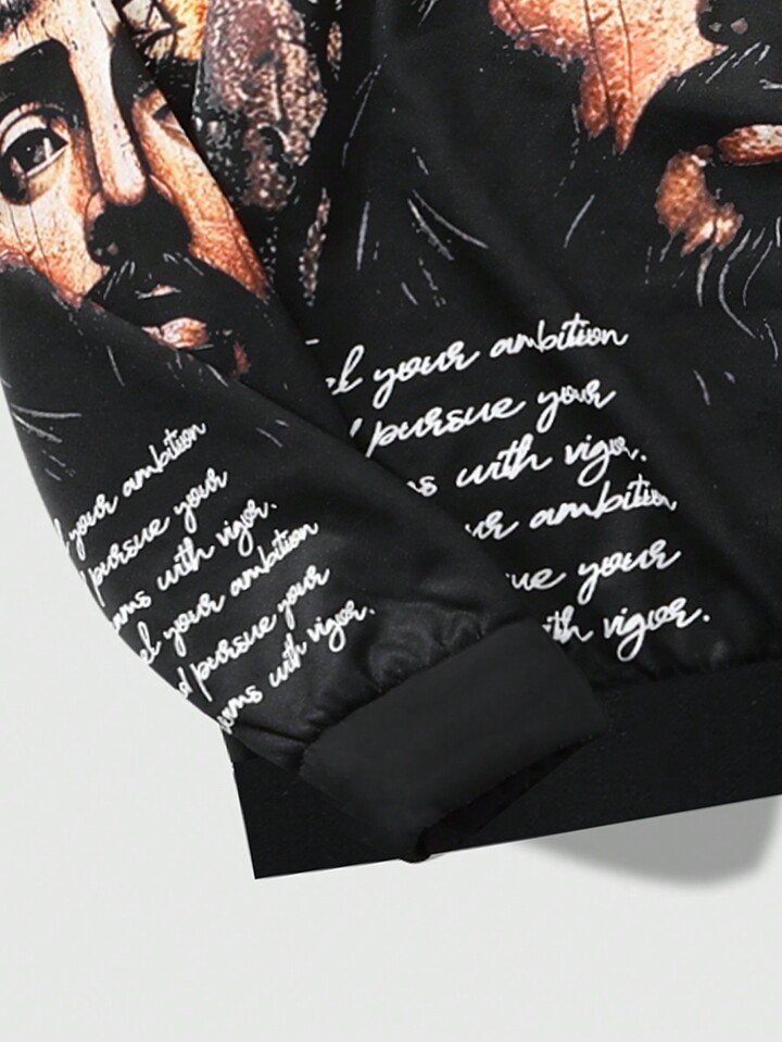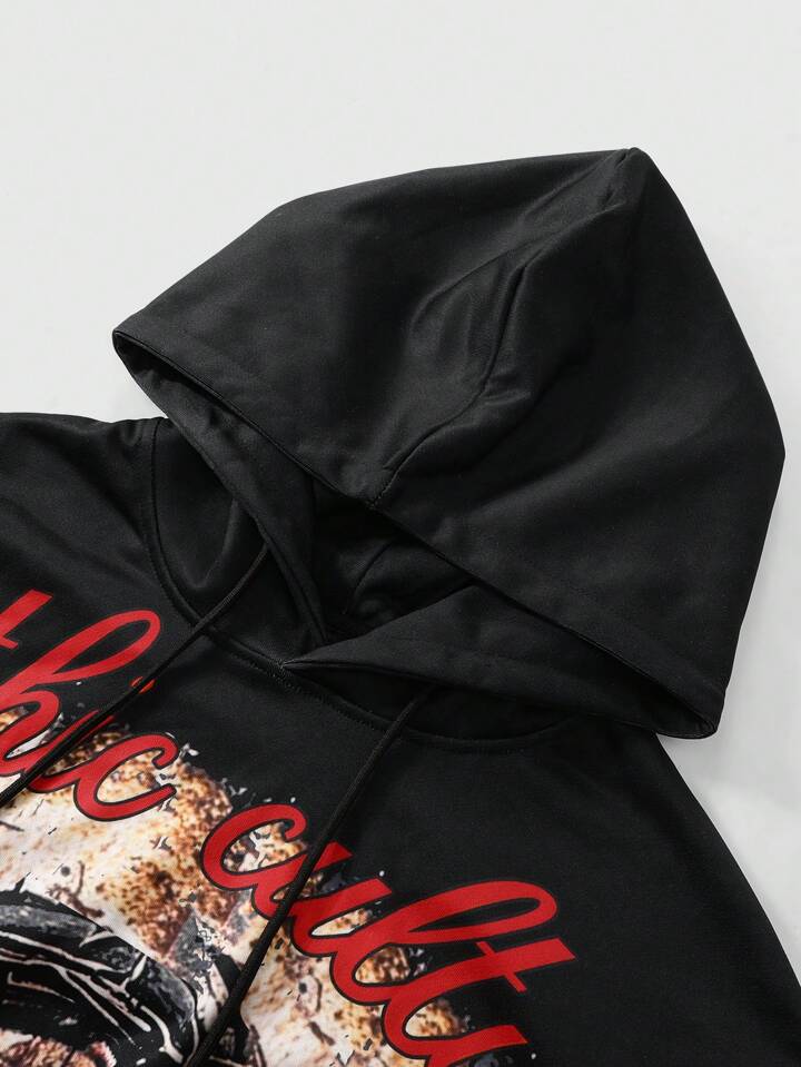 Street Life Sudadera con capucha estampada con eslogan de figura de moda urbana para hombre