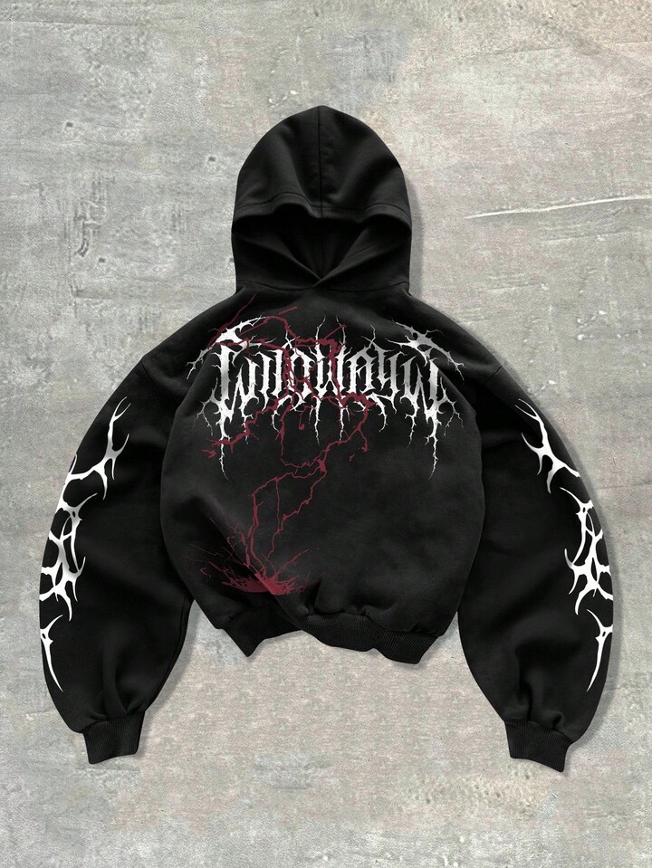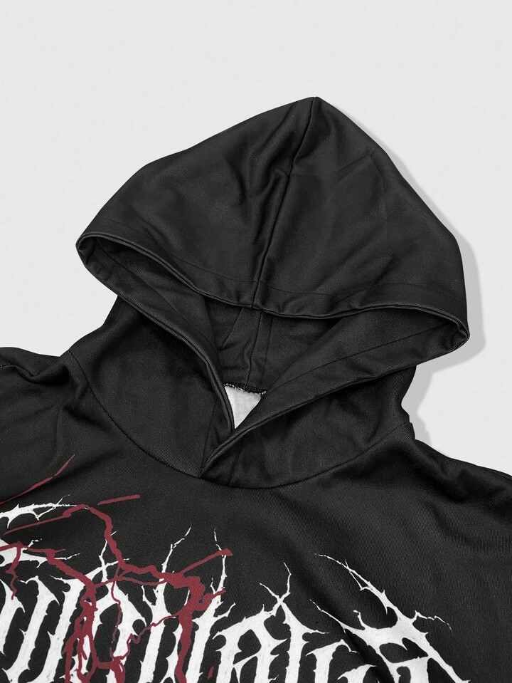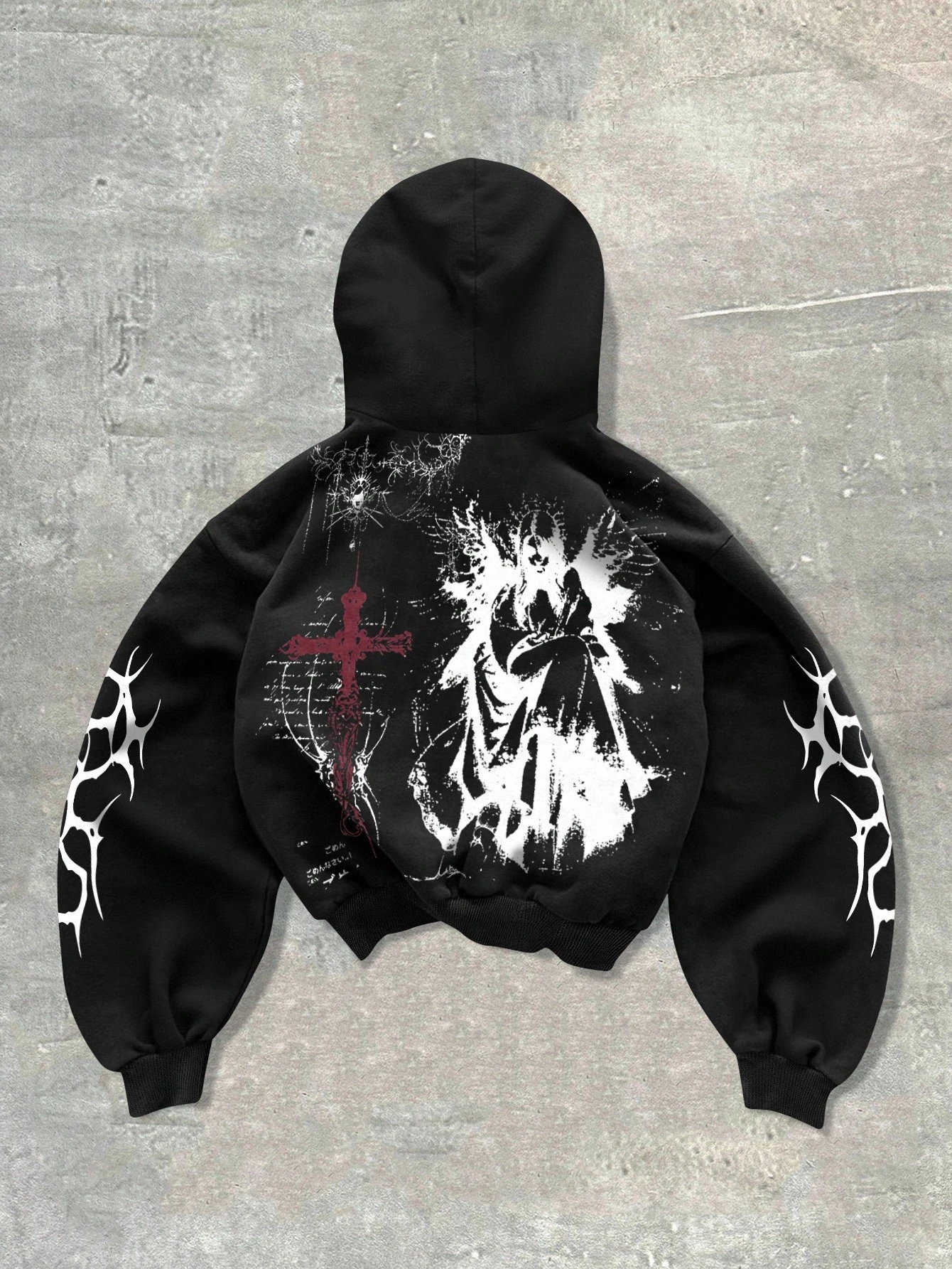 Street Life Sudadera con capucha con estampado de figura y cruz para hombres