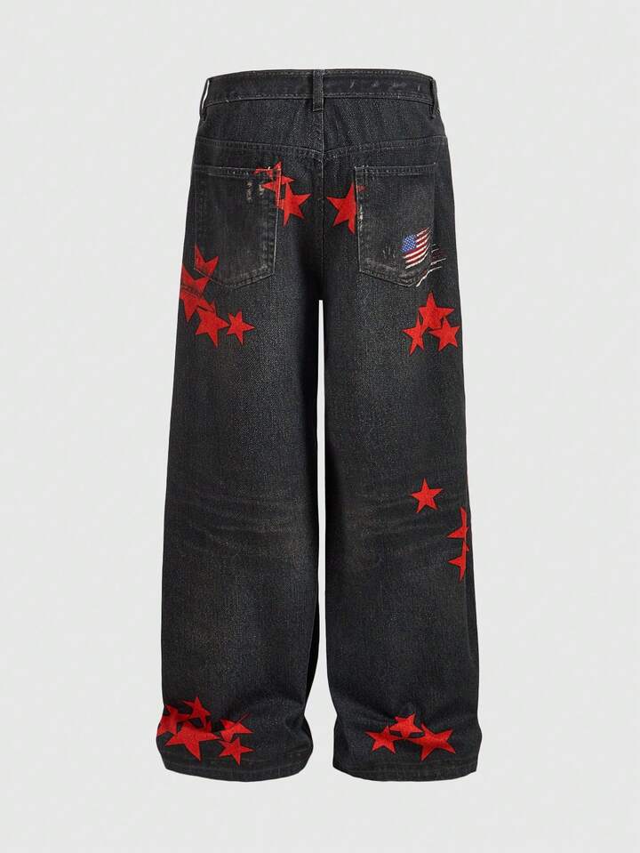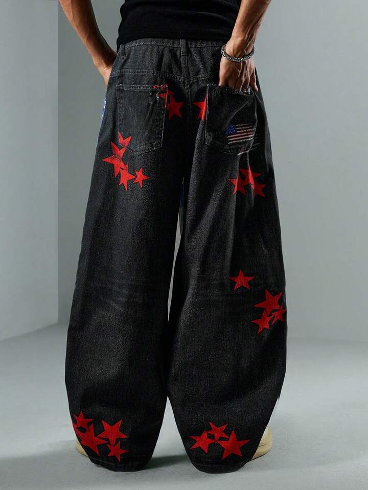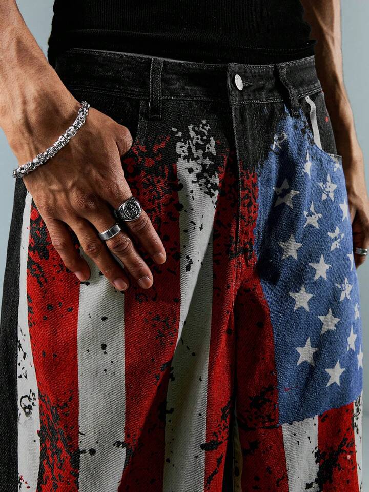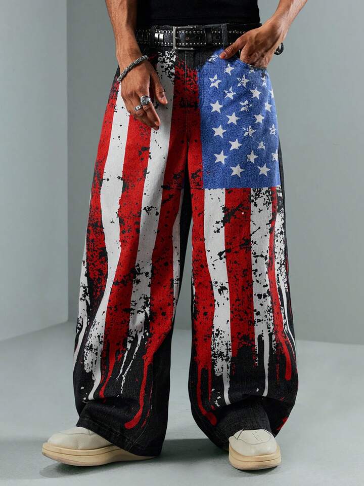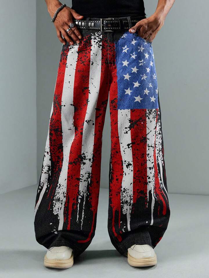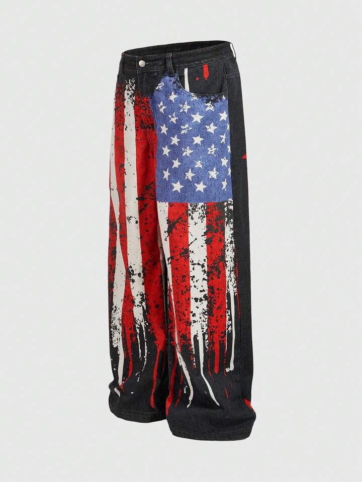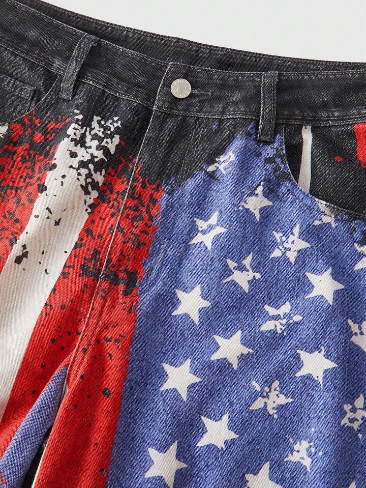 Street Life Jeans con estampado de bandera y corte curvo para hombres