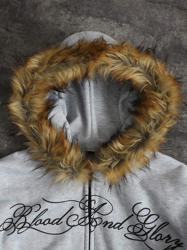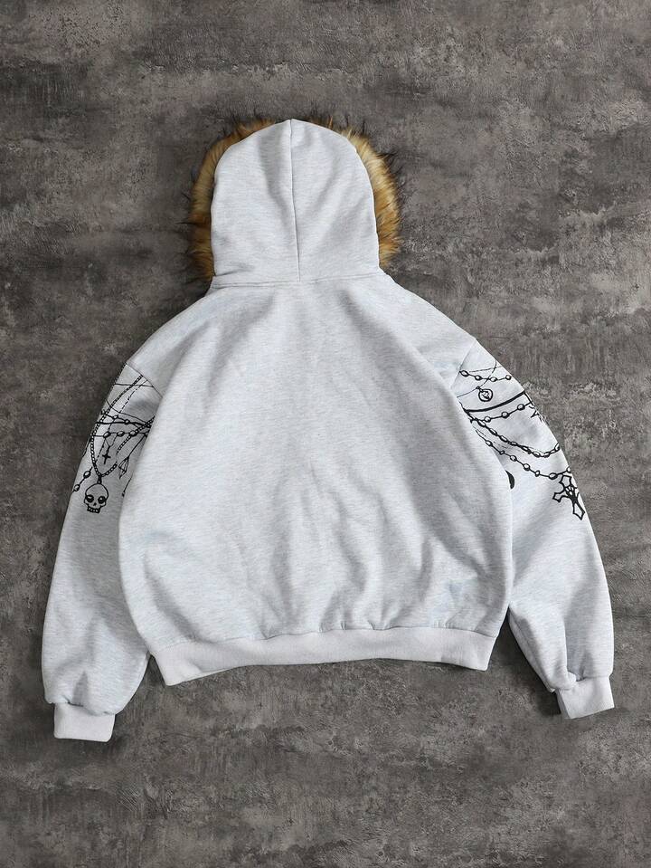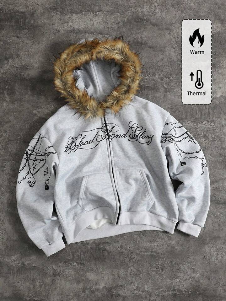 Street Life Sudadera con capucha de forro polar con estampado de cuello para hombre, corte holgado