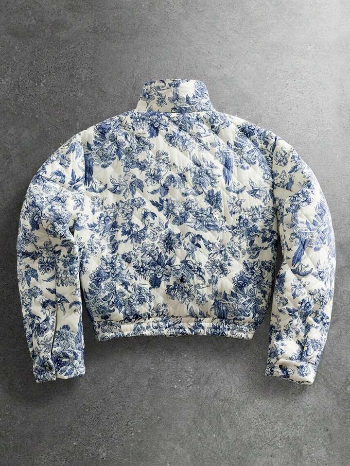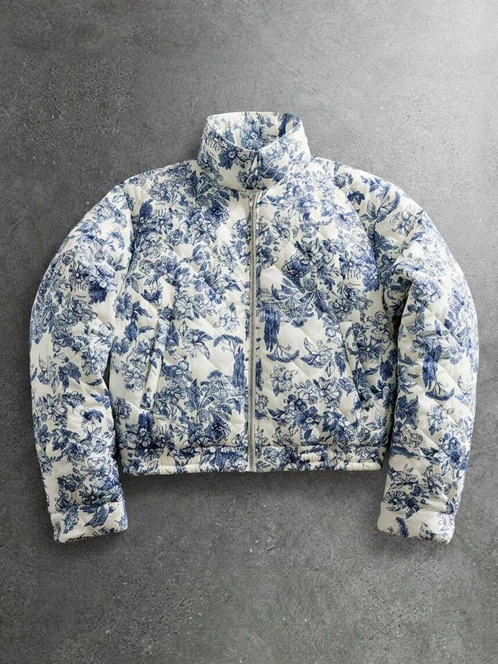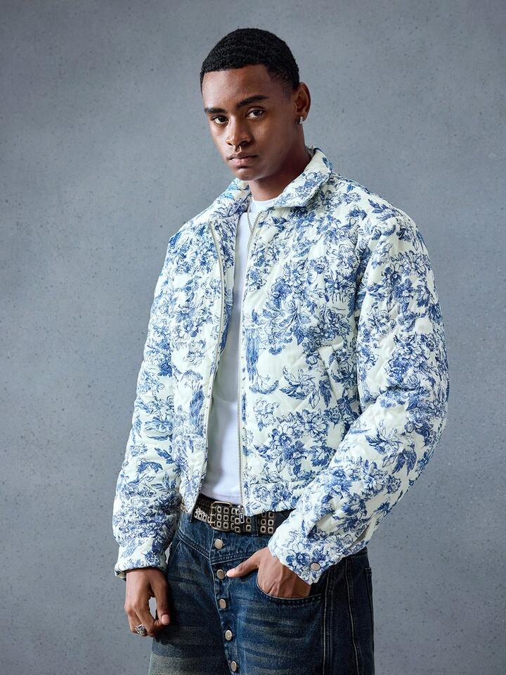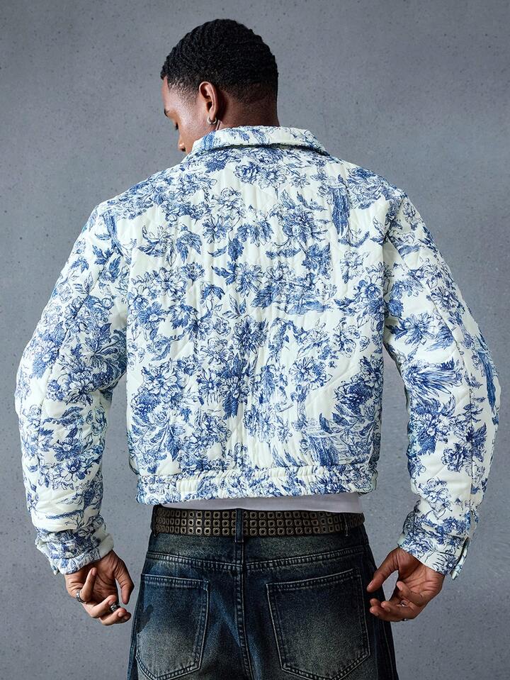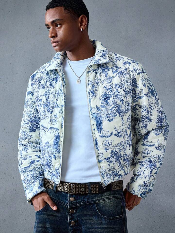 Street Life Abrigo casual de manga larga con cremallera y estampado floral para hombres, versátil para otoño/invierno