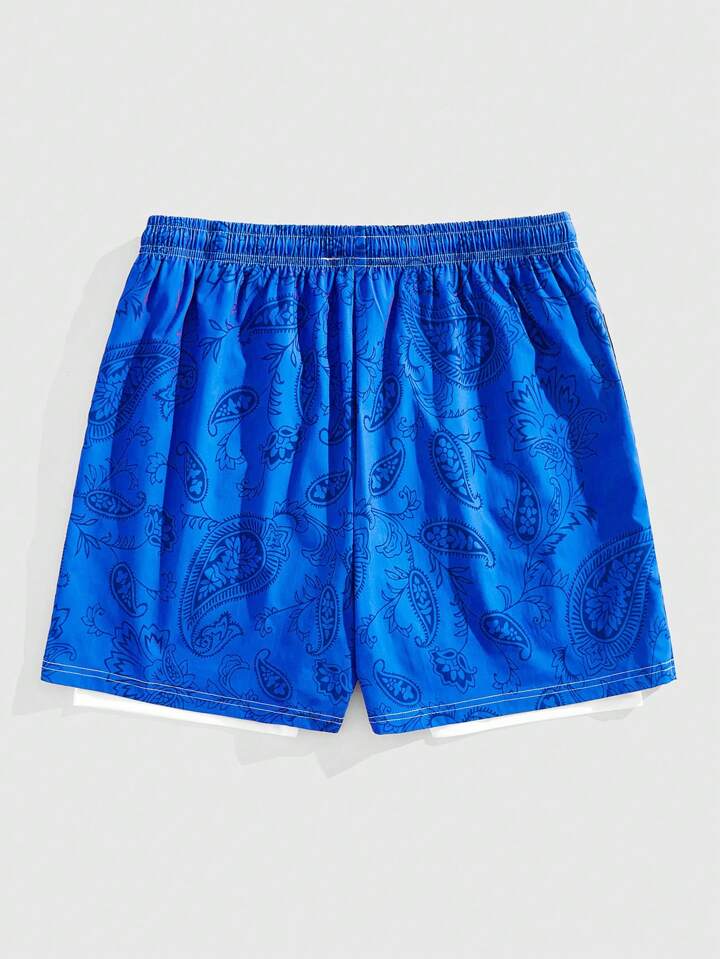 Street Life Pantalones cortos casuales de vacaciones con estampado de 2 en 1 con lazo delantero para hombre
