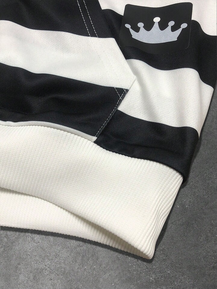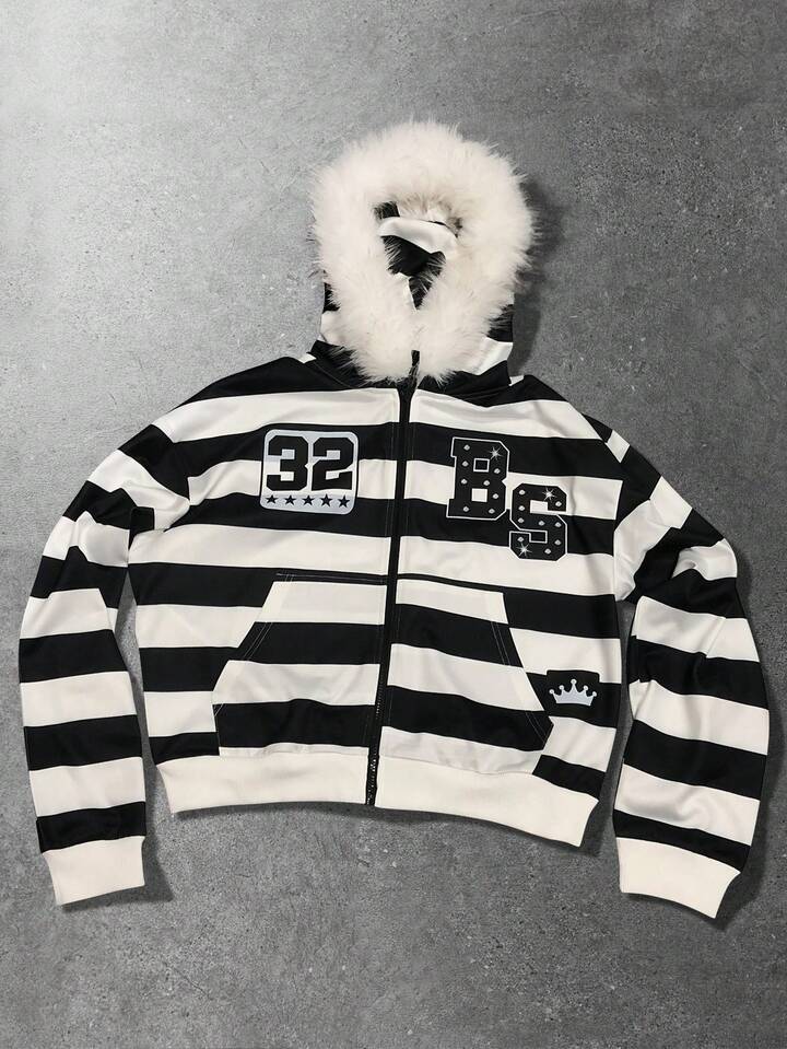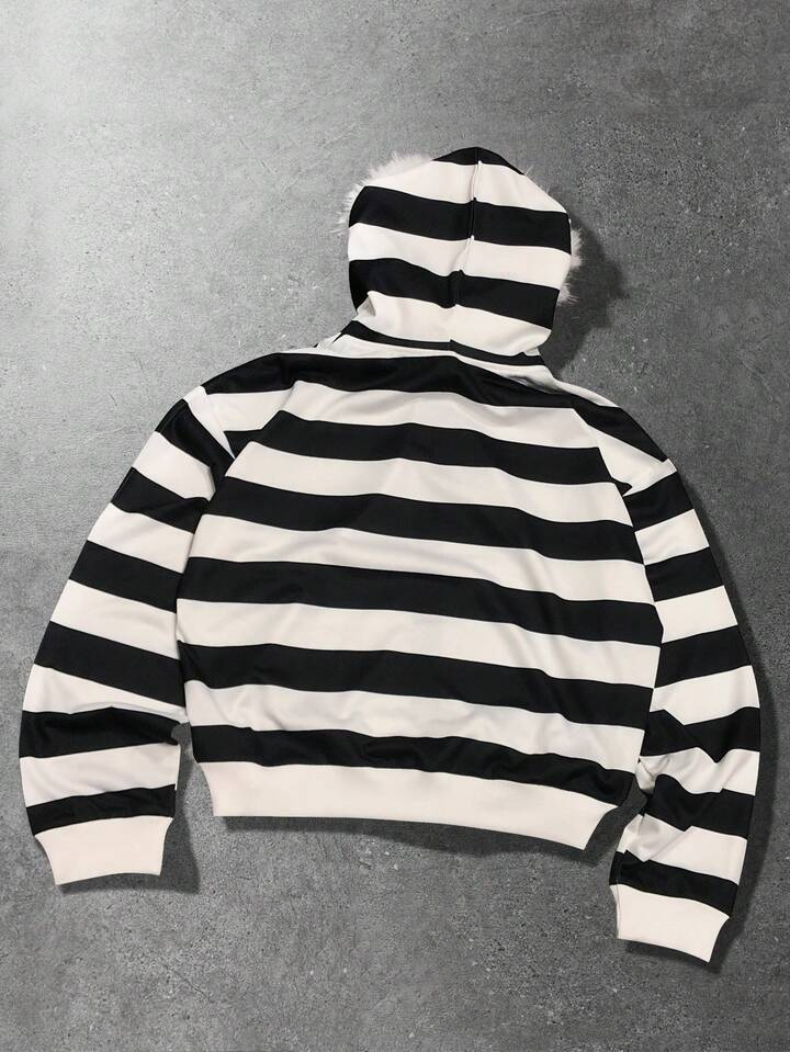 Street Life Sudadera con cuello de peluche y rayas para hombre, corte holgado