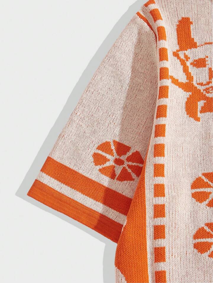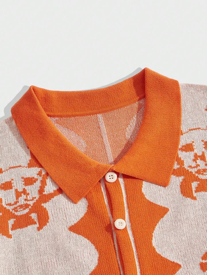 Street Life Camisa de punto con botones con estampado geométrico para hombre, escuela