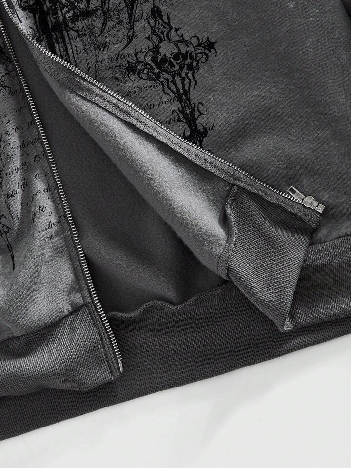 Street Life Sudadera con capucha de manga larga con estampado gris para hombre