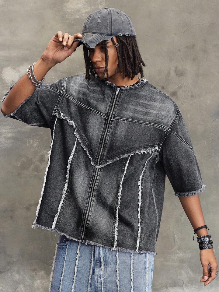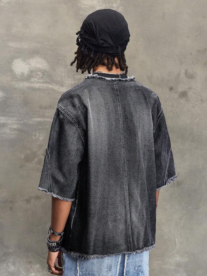 Street Life Chaqueta vaquera casual lavada con borde desgastado para hombres
