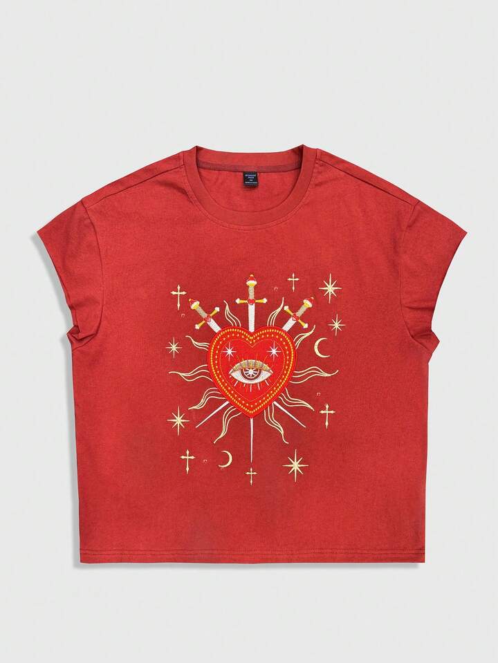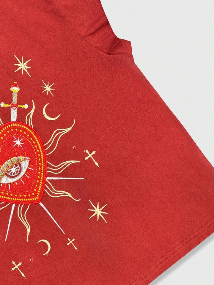 Street Life Camiseta de tirantes casual y holgada con bordado de ojos en forma de corazón para hombre