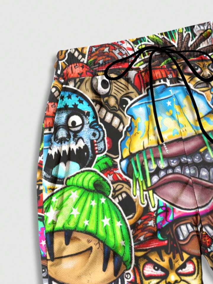 Street Life Pantalones cortos casuales estilo Y2K con graffiti americano para hombres