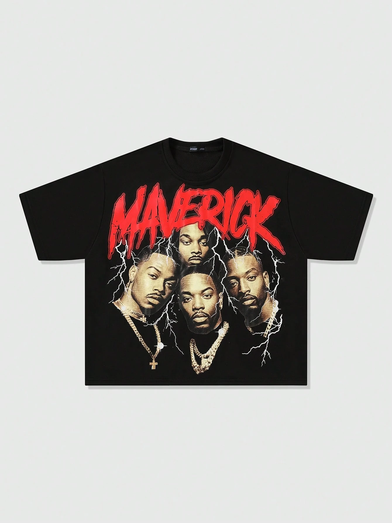 Street Life Camiseta de manga corta con estampado de retrato de hombre, estilo holgado y cropped