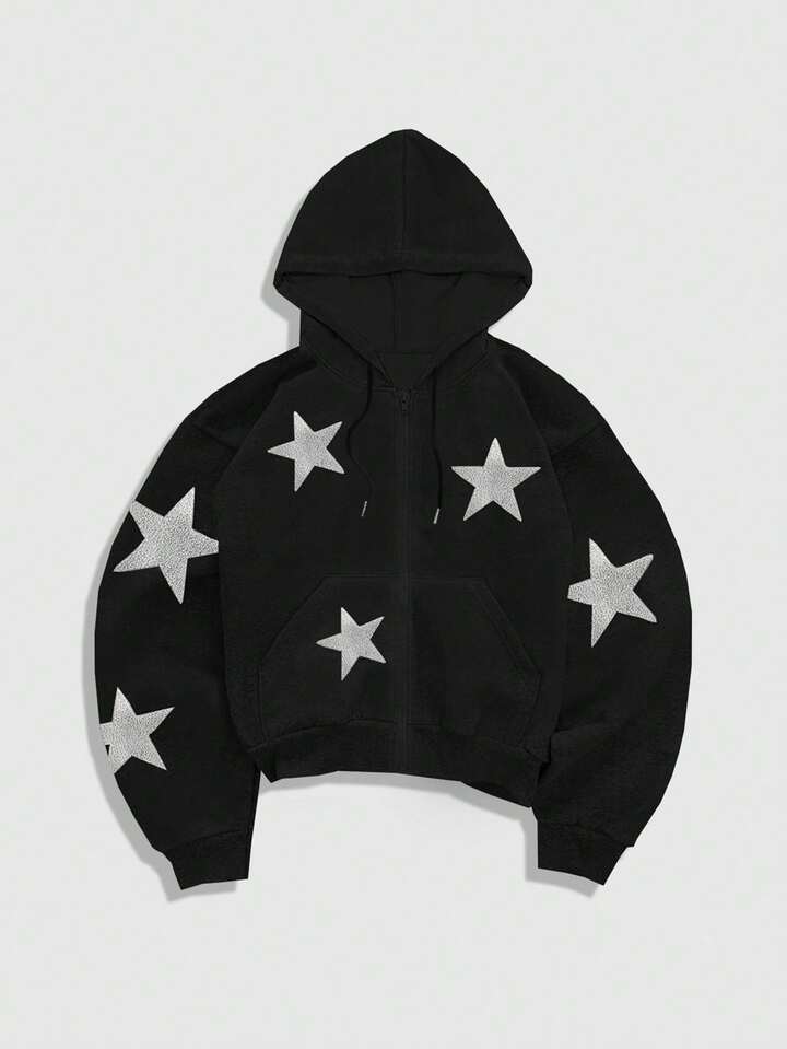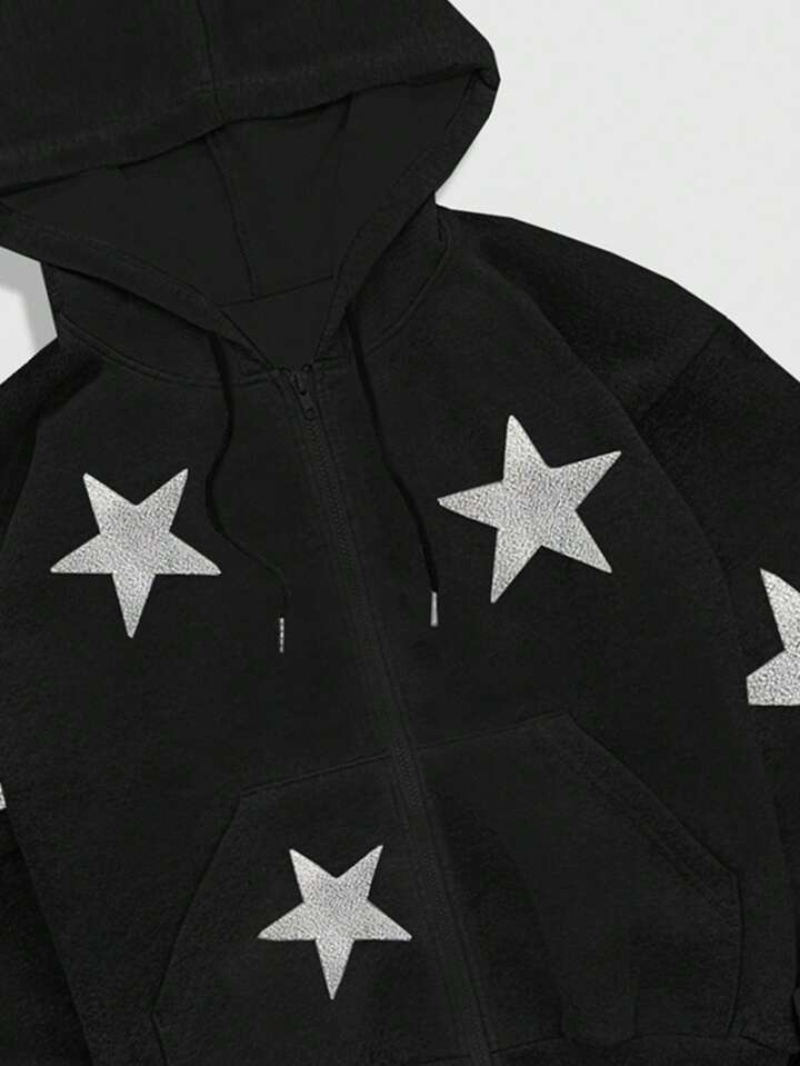 Street Life Sudadera con capucha y cordón ajustable para hombres, con estampado versátil de estrella de cinco puntas
