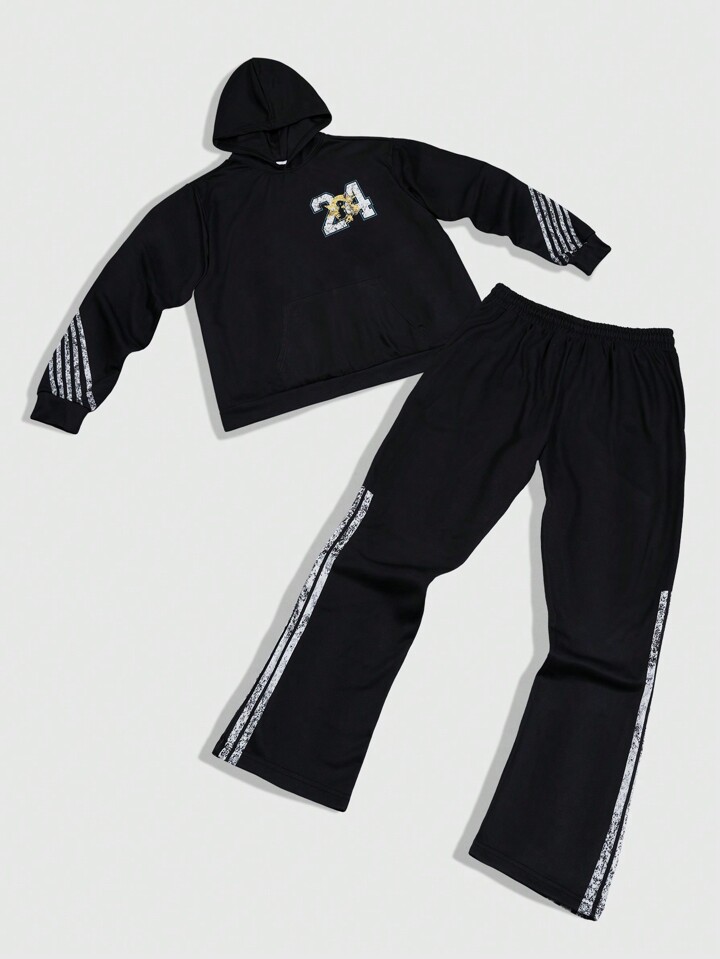 Street Life Chándal de sudadera con capucha y pantalones rectos holgados para hombre
