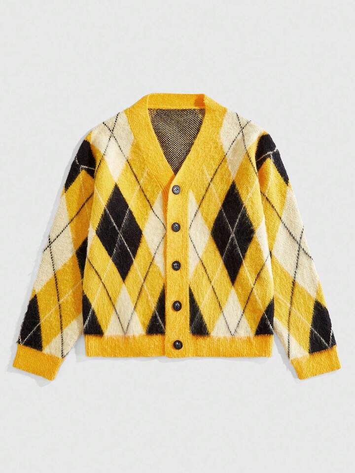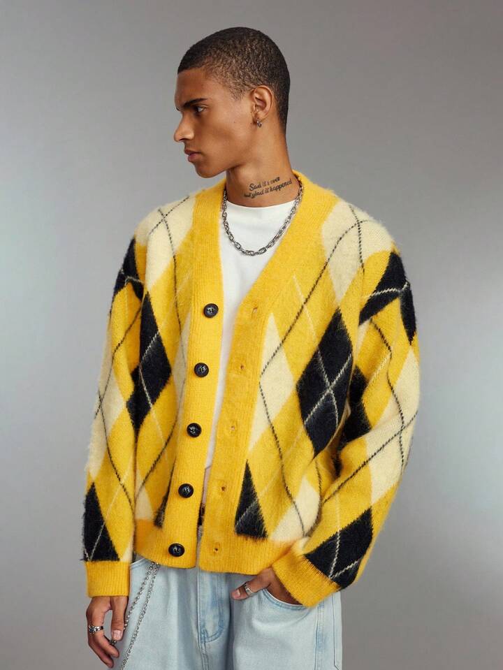 Street Life Chaqueta de punto jacquard para hombre, suéter de estilo corto y suelto, otoño e invierno