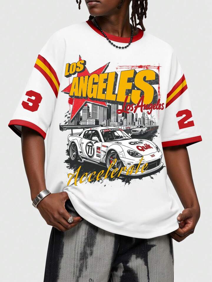 Street Life Camiseta de cuello redondo vintage de estilo urbano para hombre, adecuada para uso casual diario en primavera/verano