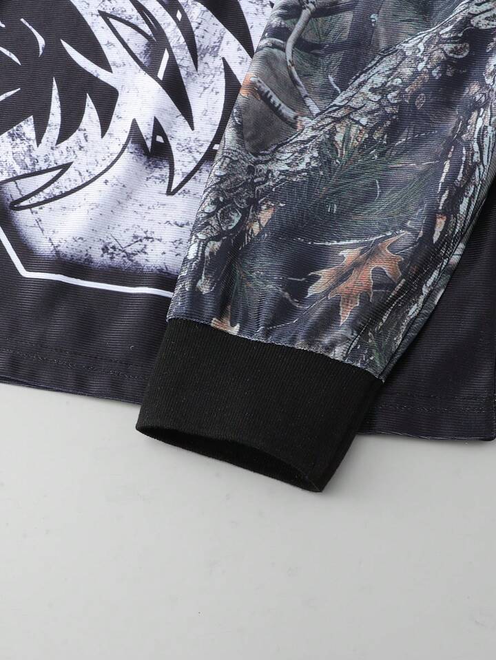 Street Life Camiseta de manga raglán con estampado de camuflaje de ramas y madera muerta, ropa urbana para hombres