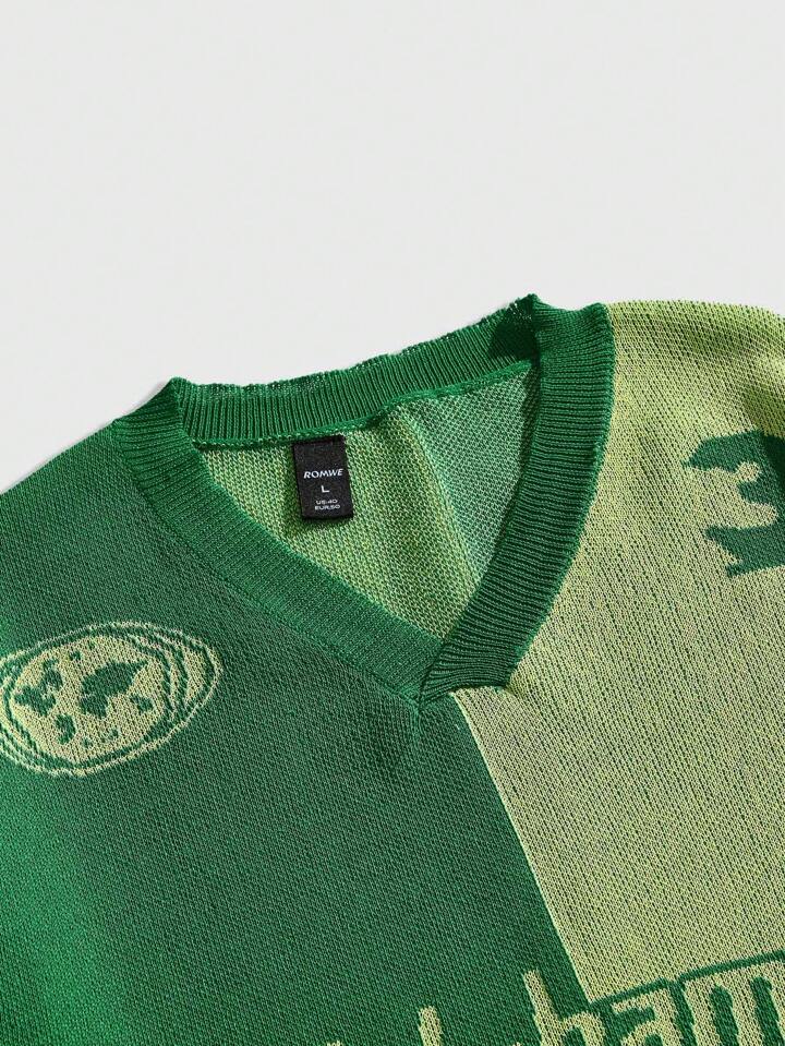 Street Life Camiseta de punto con cuello en V de manga corta para hombres con diseño gráfico de patrón de fútbol y letras