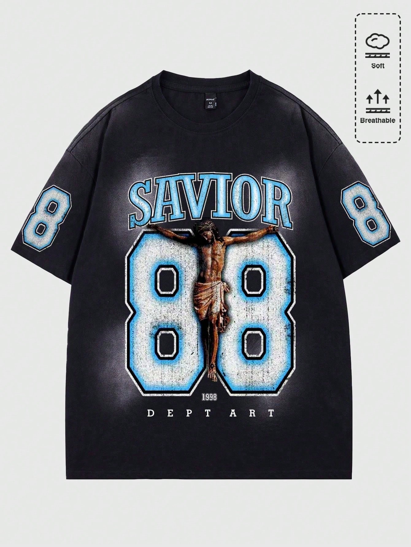 Street Life Camiseta de manga corta con estampado de Jesús, lavada y desgastada, de estilo vintage para el verano