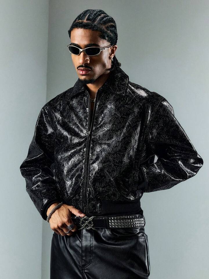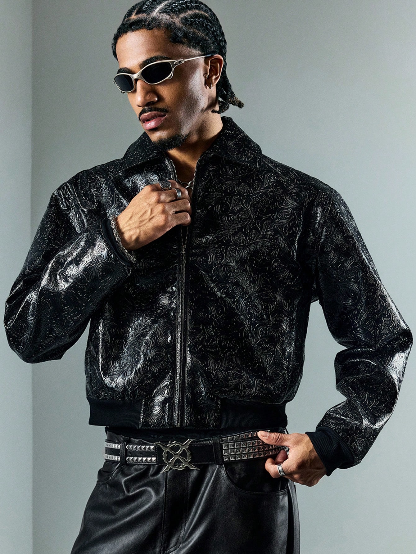 Street Life Chaqueta de cuero con cremallera para motocicleta para hombres