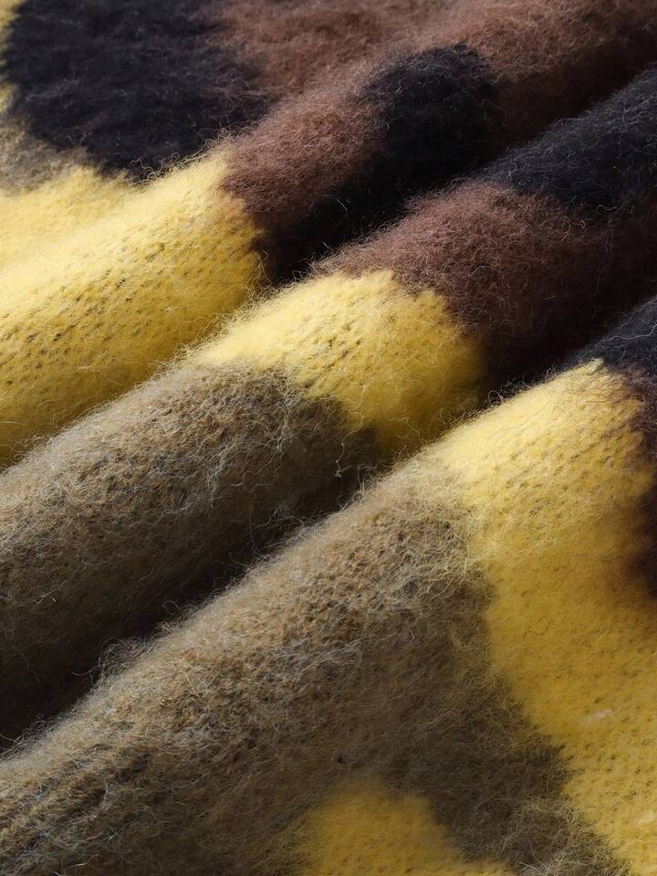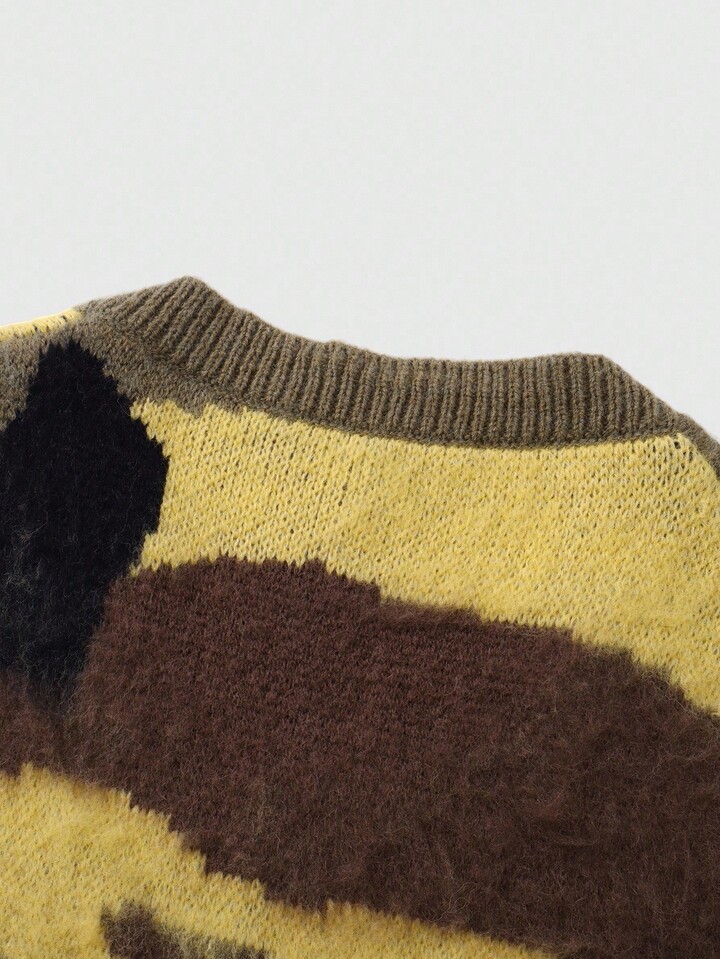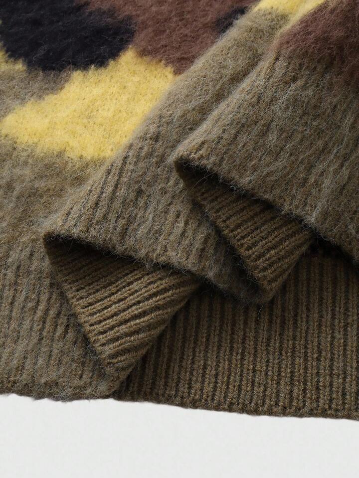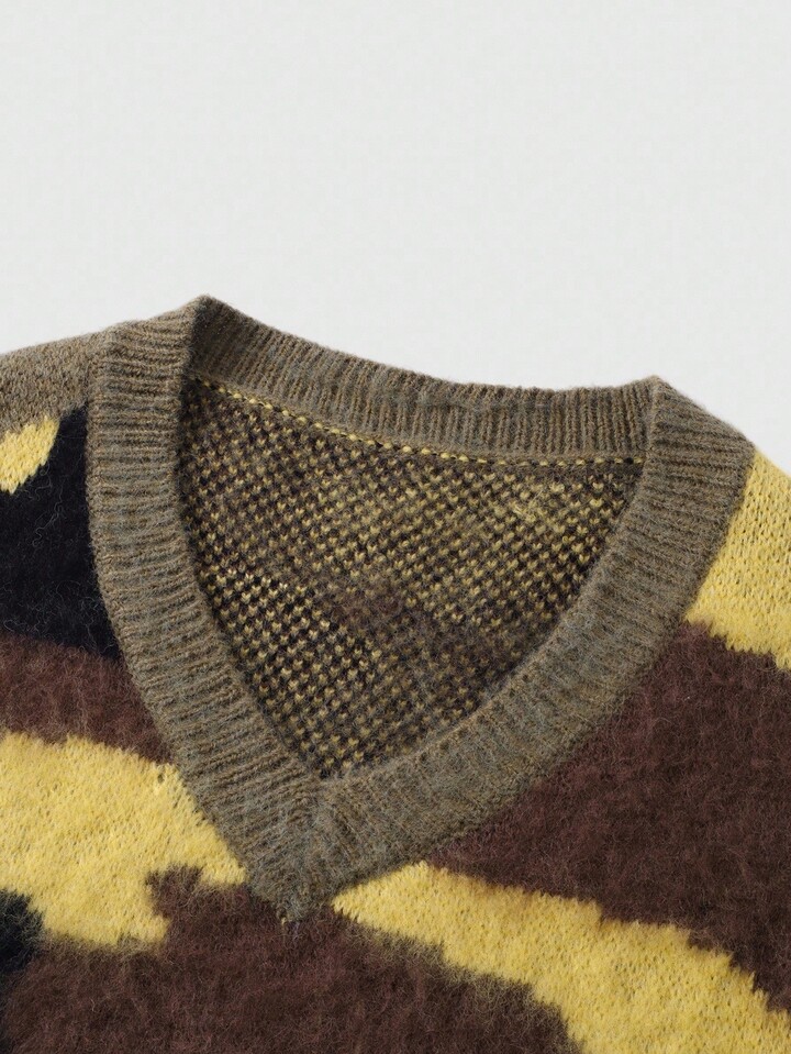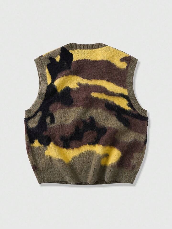 Street Life Jersey sin mangas casual de cuello en V holgado con estampado de camuflaje de punto para hombre, otoño e invierno