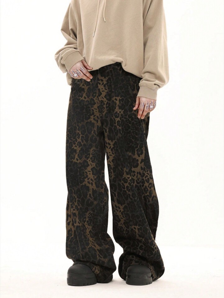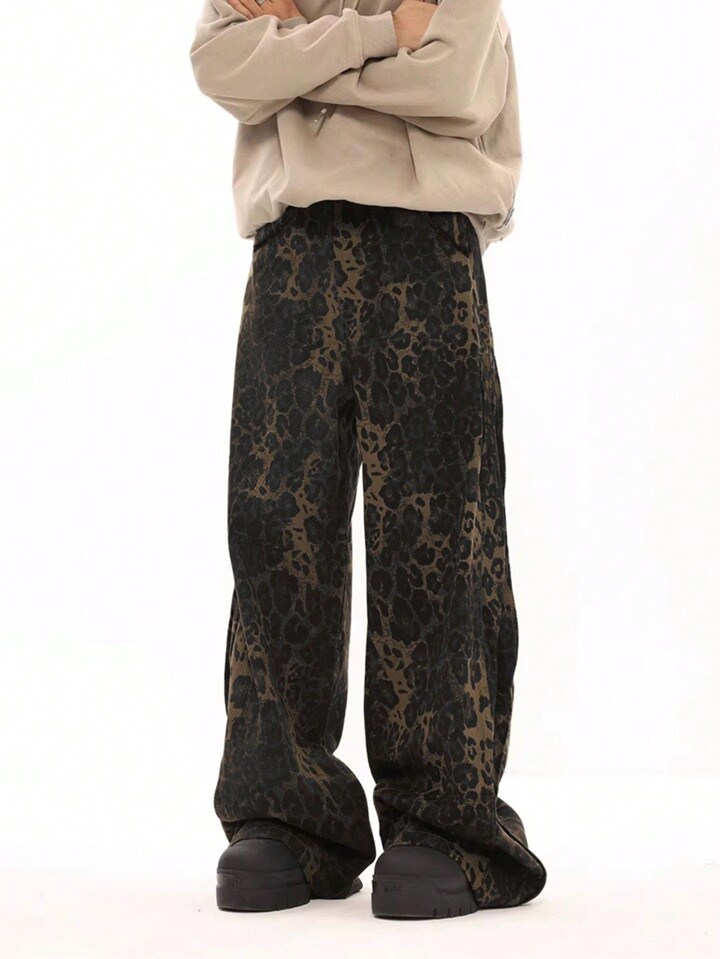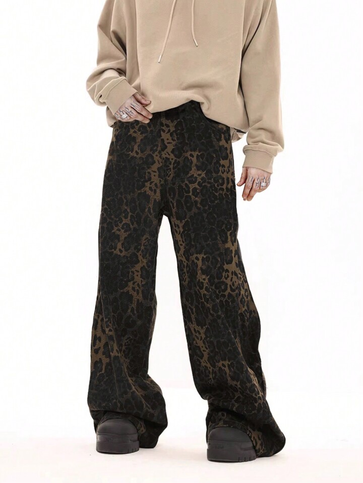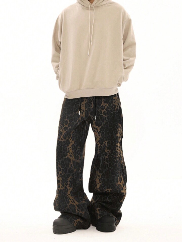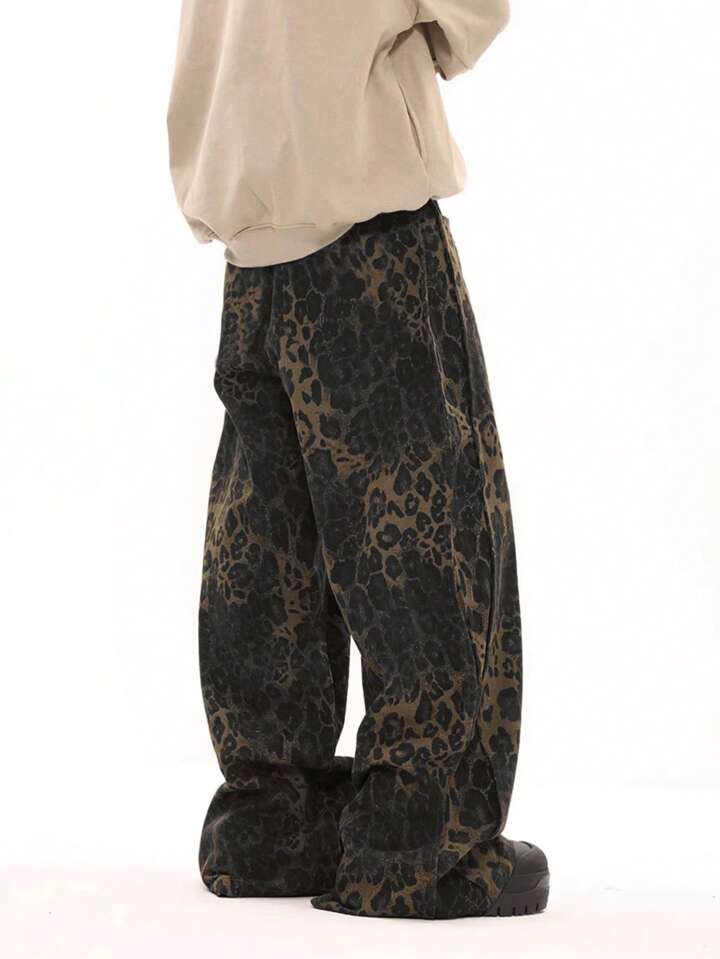 Street Life Pantalones de chándal casuales con estampado de leopardo y bolsillos para hombres, escuela