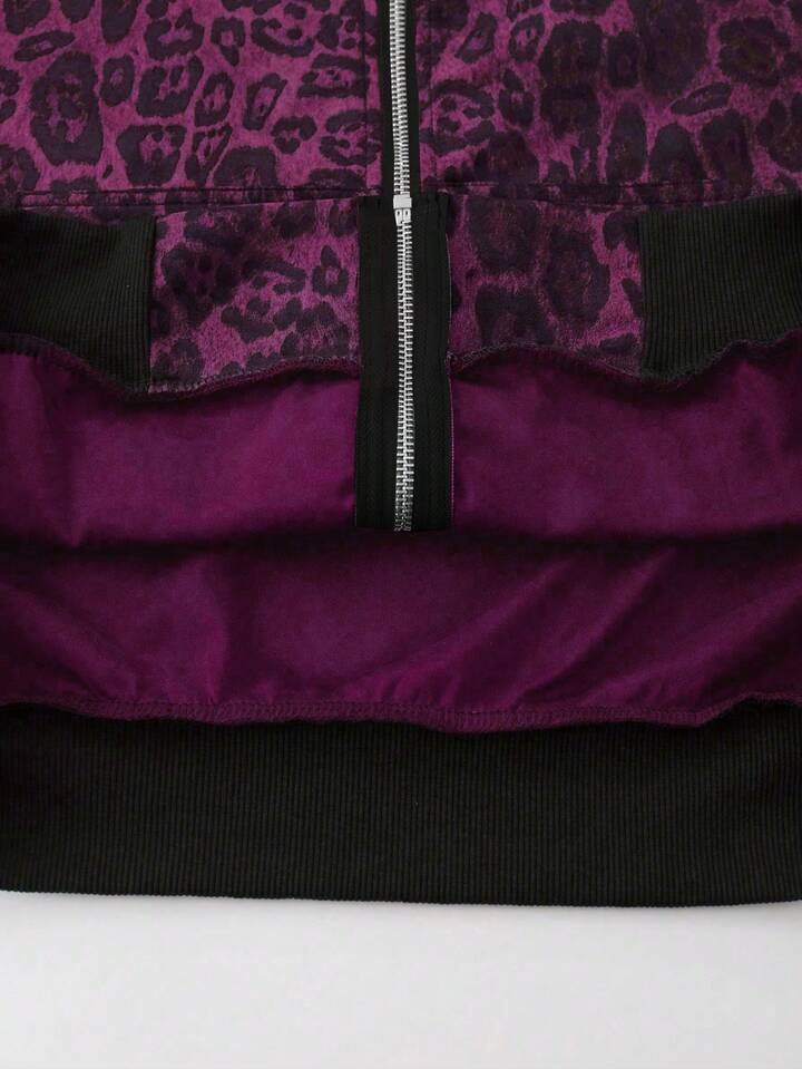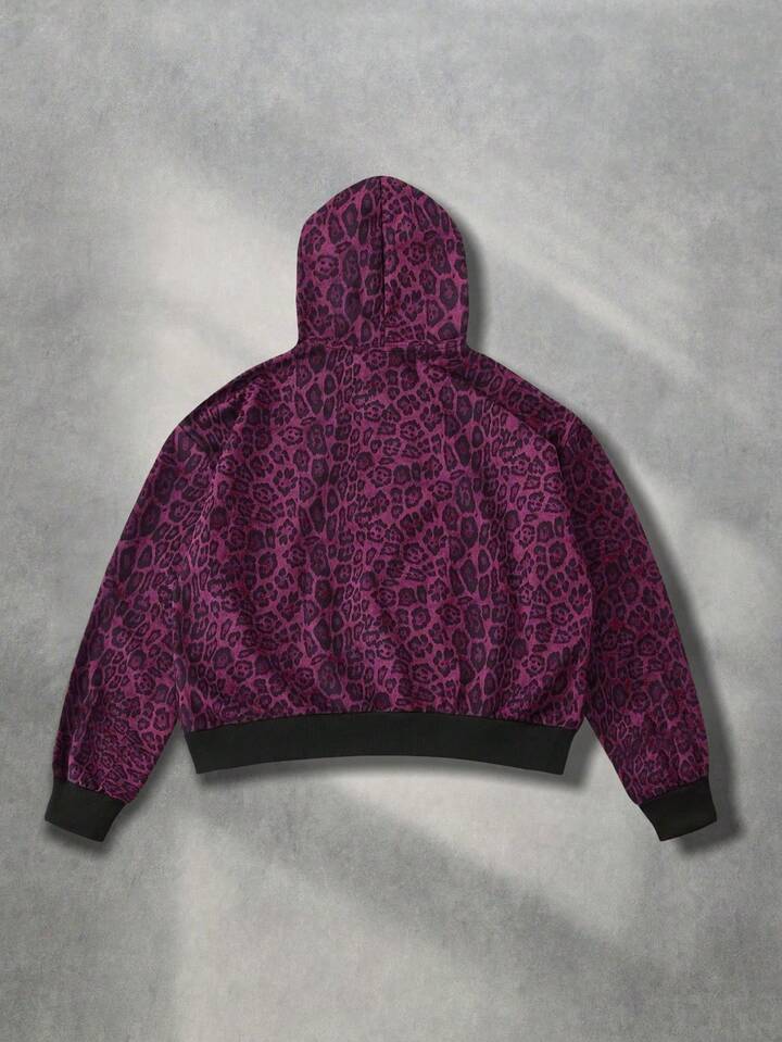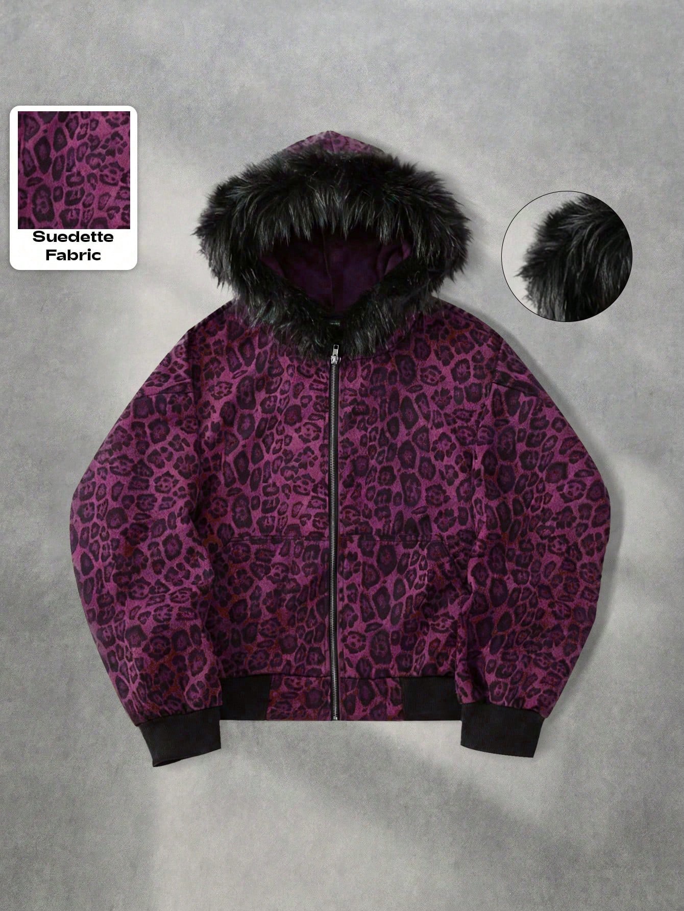 Street Life Sudadera casual con capucha, cremallera frontal y cuello de piel de leopardo para hombre, otoño/invierno