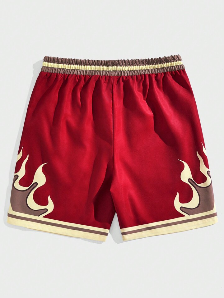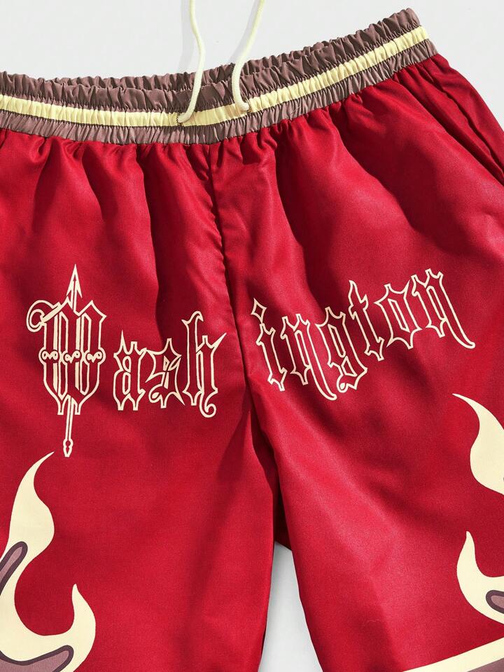 Street Life Pantalones cortos de baloncesto con cordón en la cintura, con estampado de letras y llamas, para la escuela
