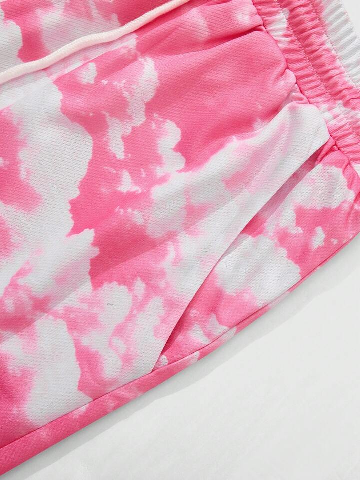 Street Life Pantalones cortos casuales con estampado de letras y nubes, con cordón en la cintura y bolsillos para hombre