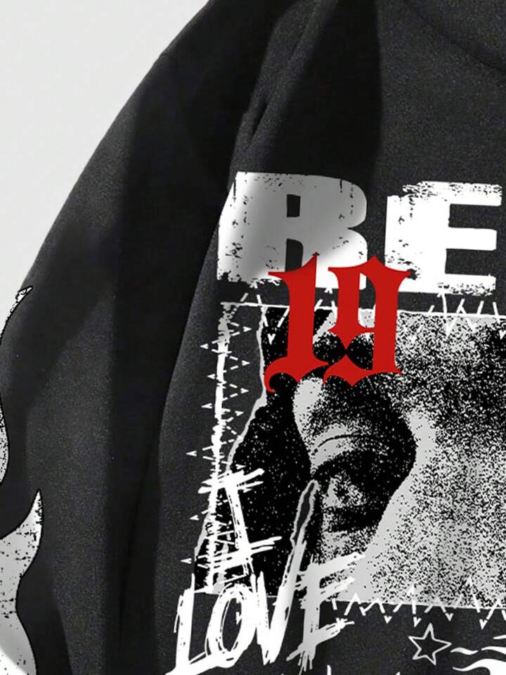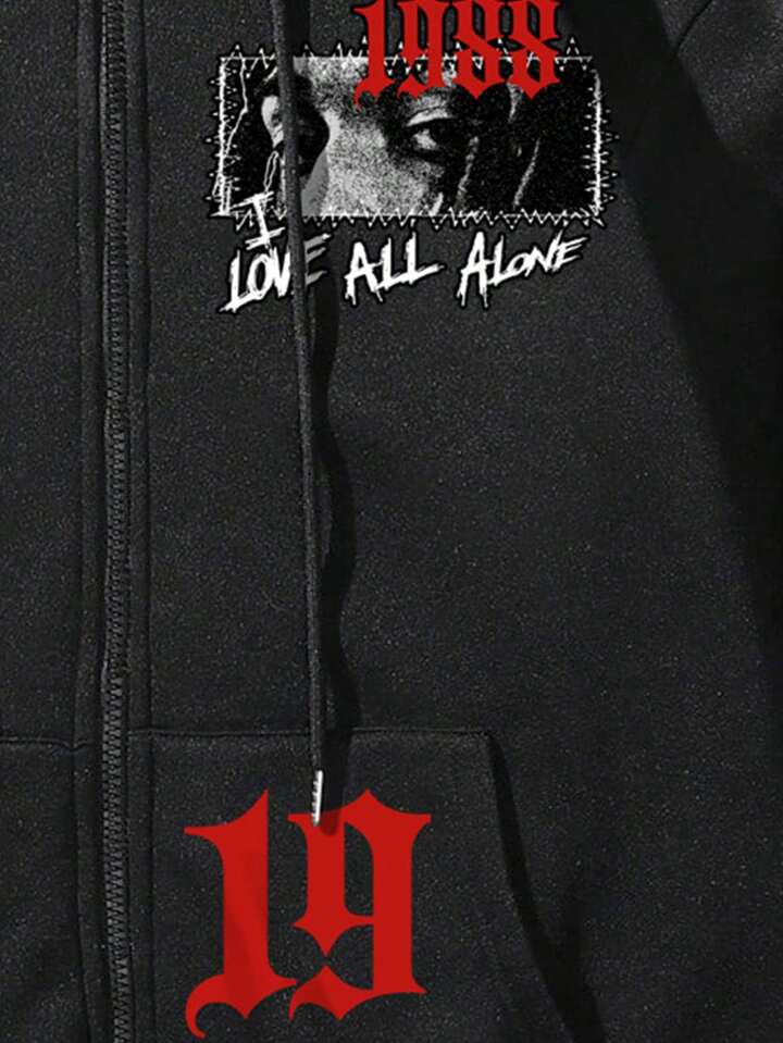 Street Life Sudadera con capucha con cremallera con gráfico de letra y ojo para hombre