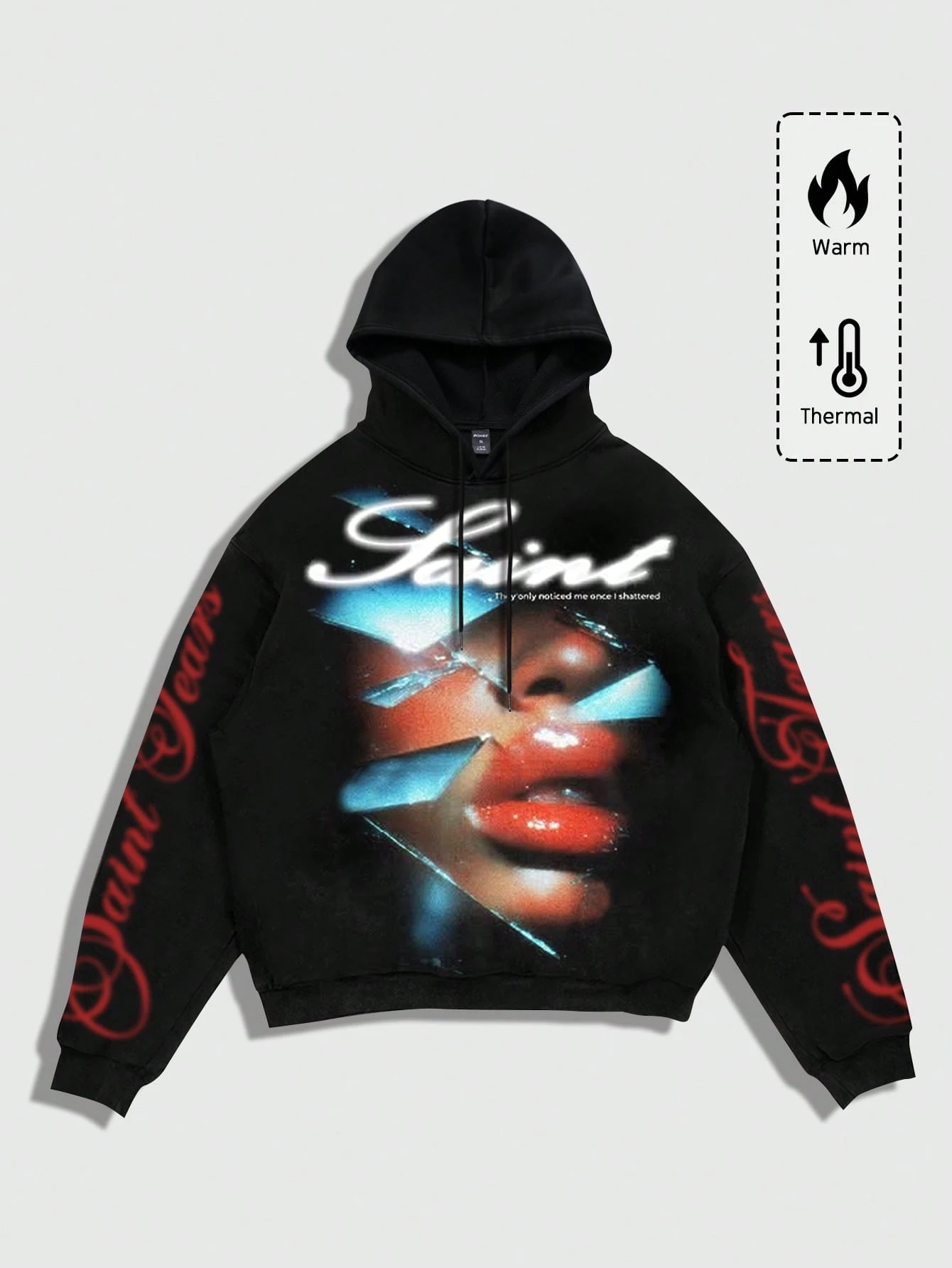 Street Life Sudadera casual con capucha, cordón y estampado de letras y números, para hombre, otoño/invierno