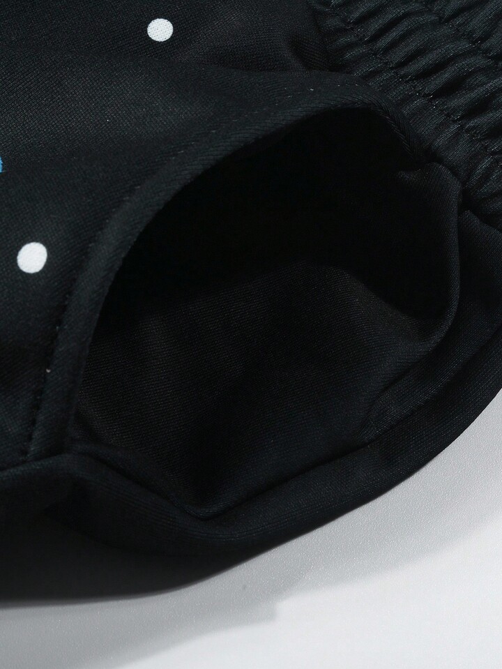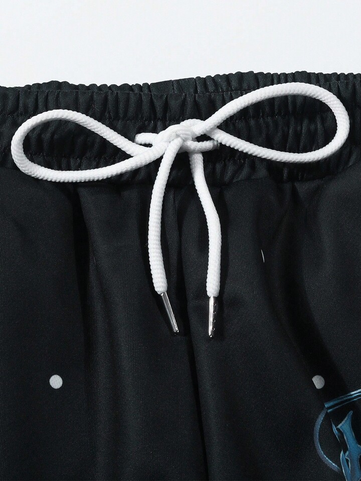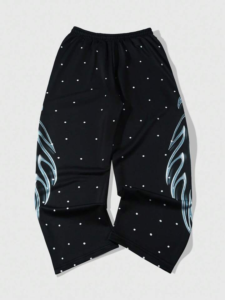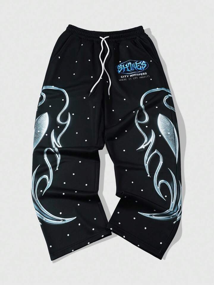 Street Life Pantalones de chándal rectos con cordón en la cintura, estampado de letras y lunares para hombres