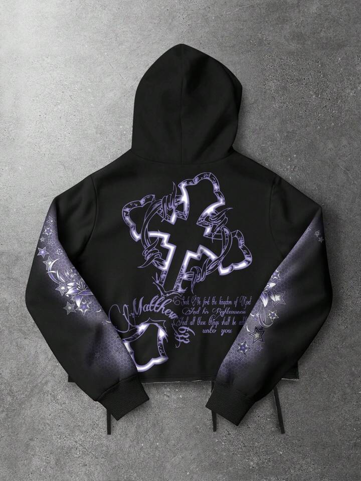 Street Life Sudadera con capucha con estampado gráfico de letras y retratos para hombres