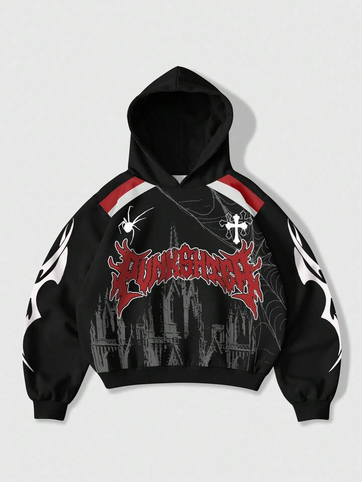 Street Life Sudadera con capucha casual y holgada con estampado de letras para hombre