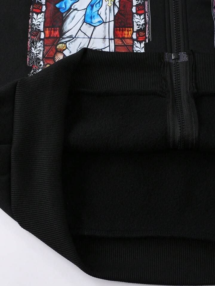 Street Life Sudadera con capucha y cremallera con estampado de letras de manga larga para hombre, casual para otoño/invierno