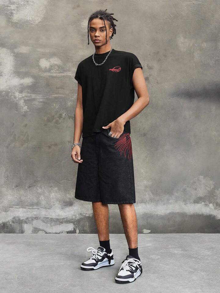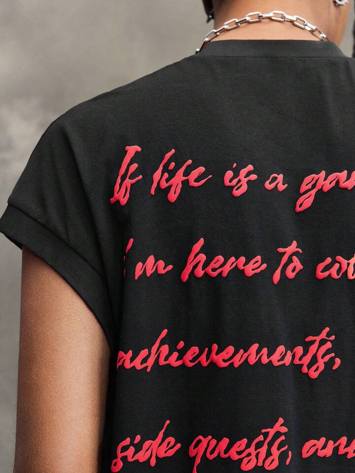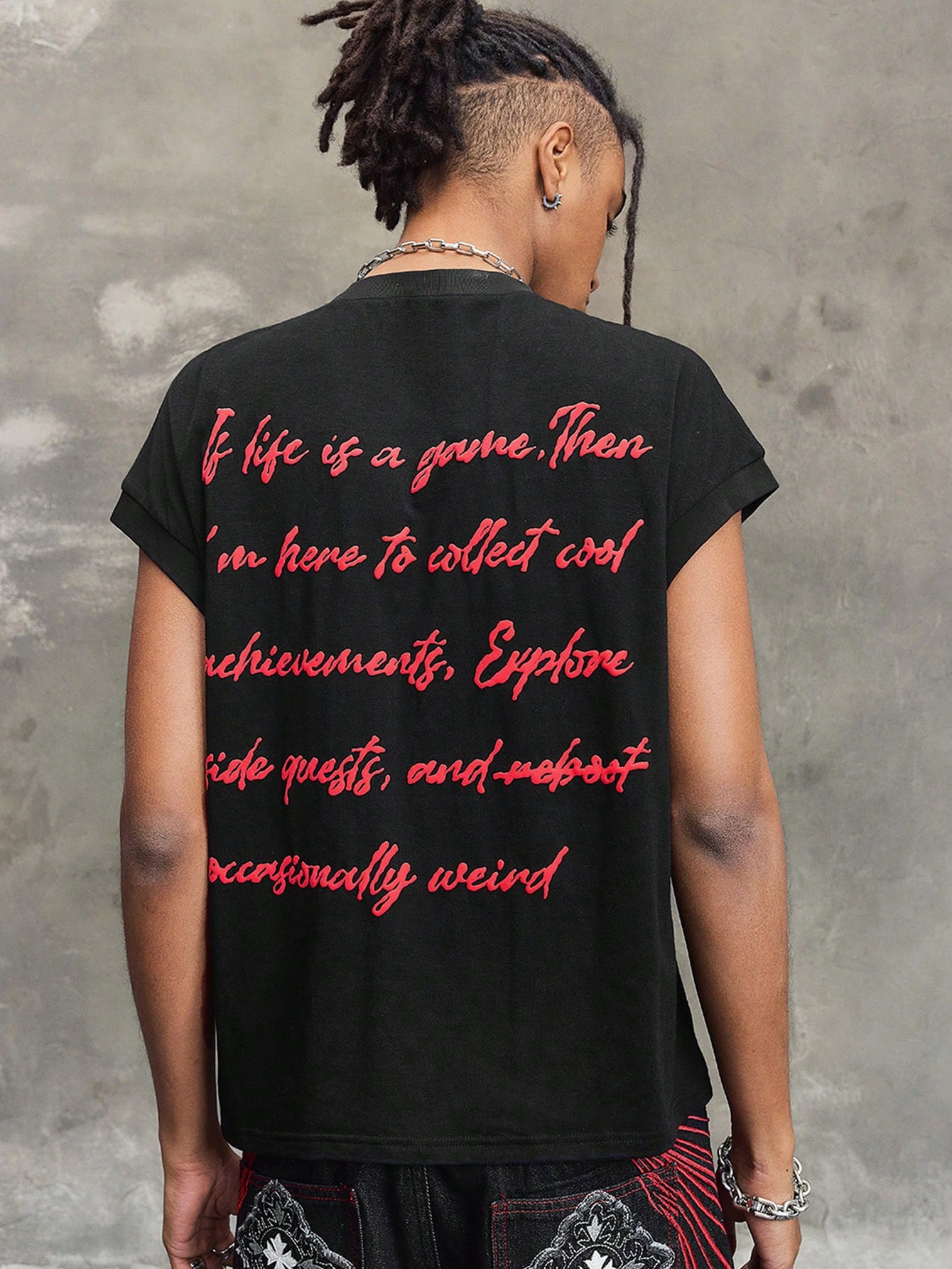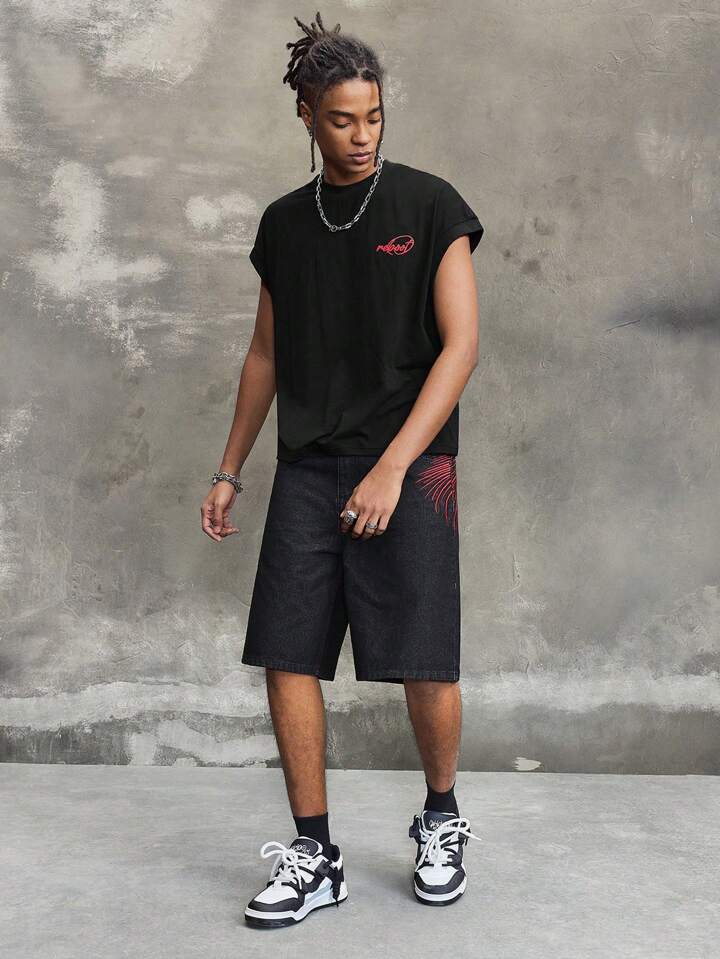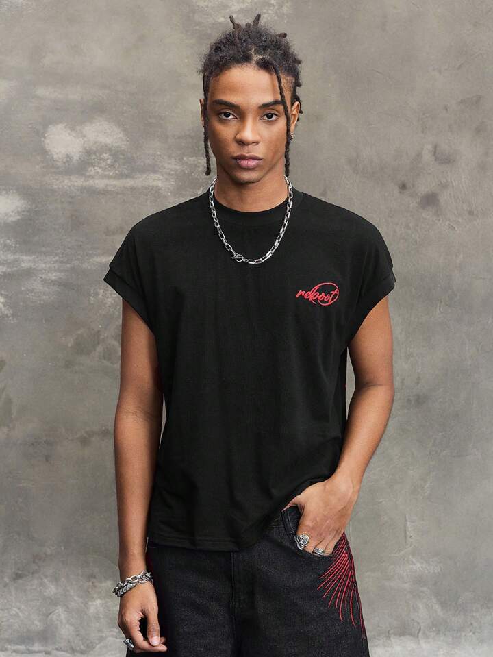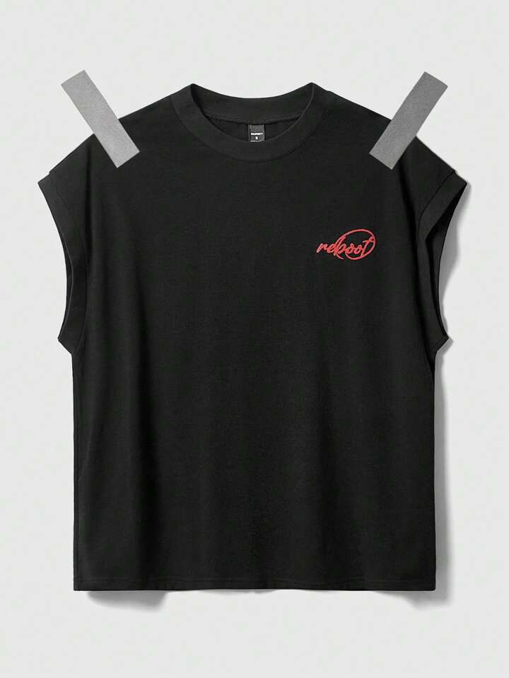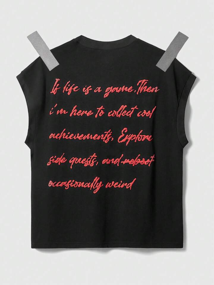 Street Life Camiseta de tirantes casual holgada con estampado de letras, cuello redondo para hombres