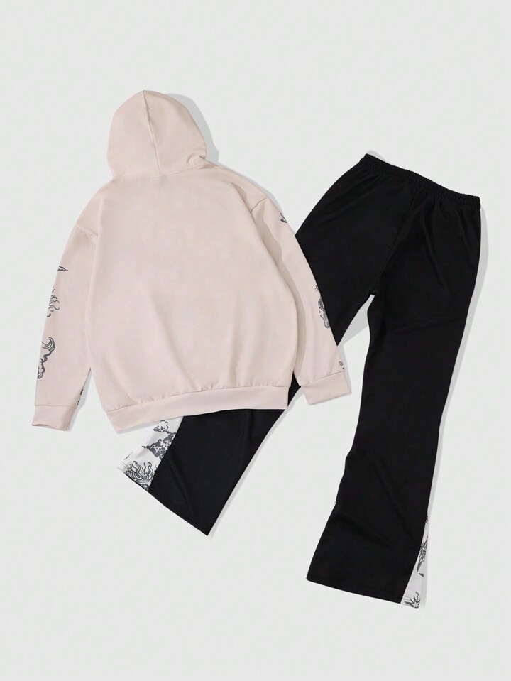 Street Life Conjunto de sudadera con capucha y pantalones estampado de letras, conjunto de chándal casual para hombres