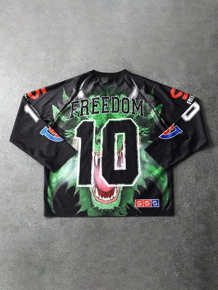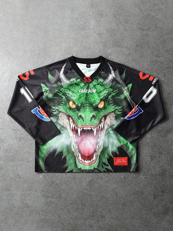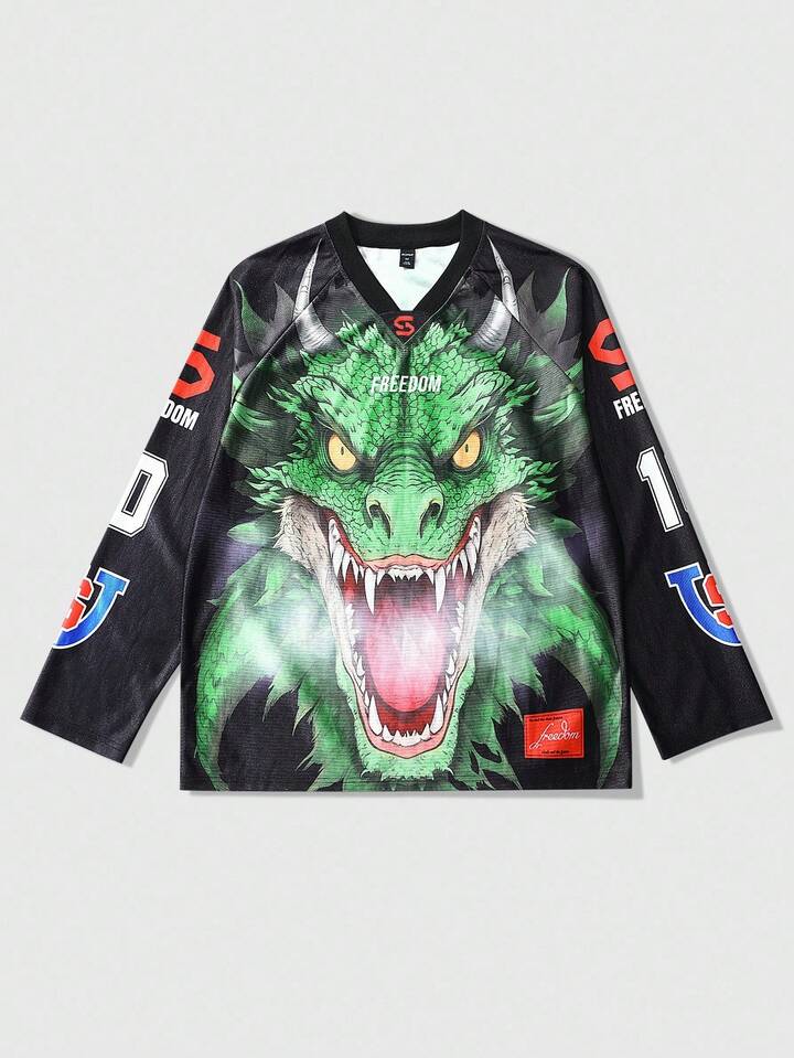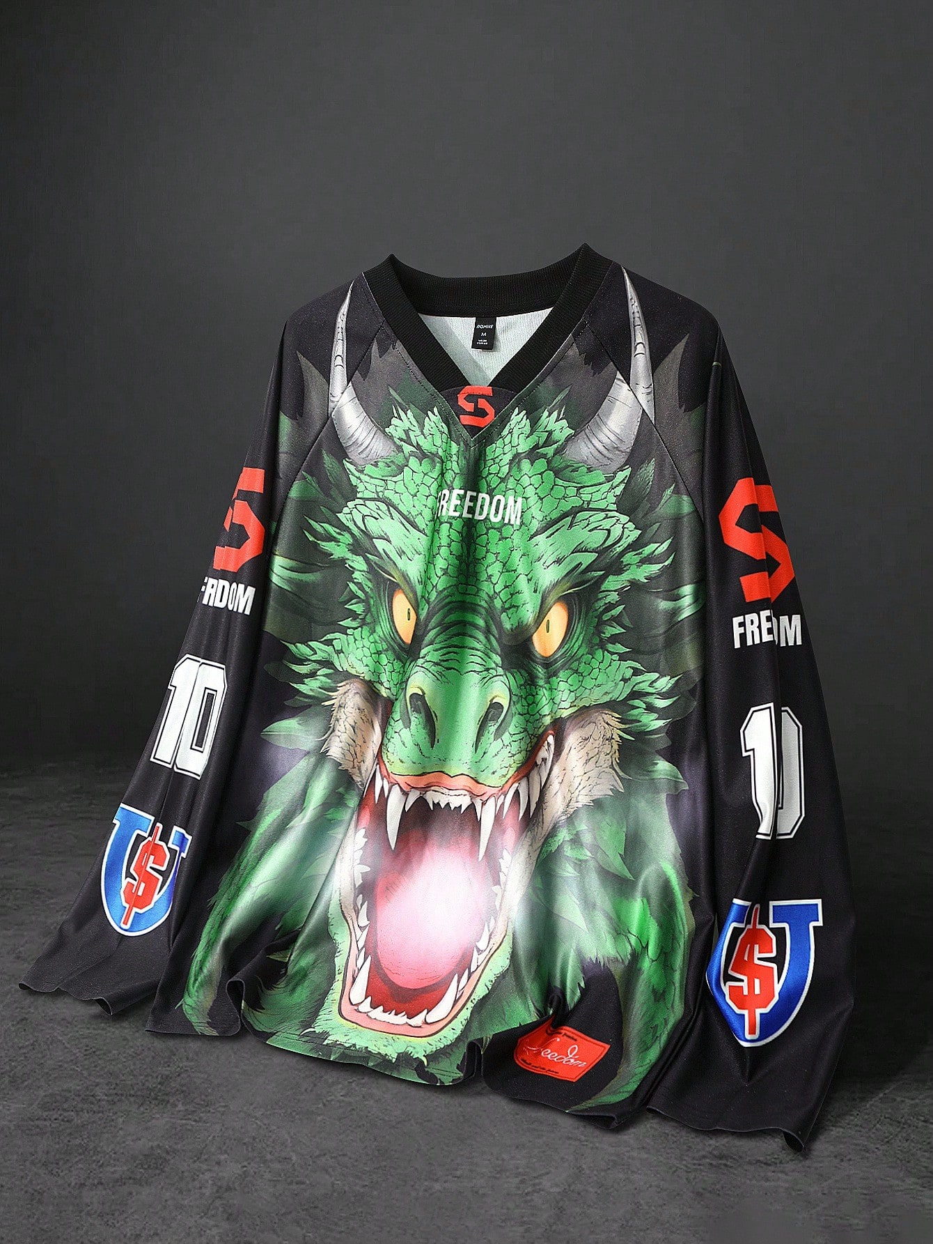 Street Life Camiseta holgada de manga larga con cuello en V y estampado de letras para hombre