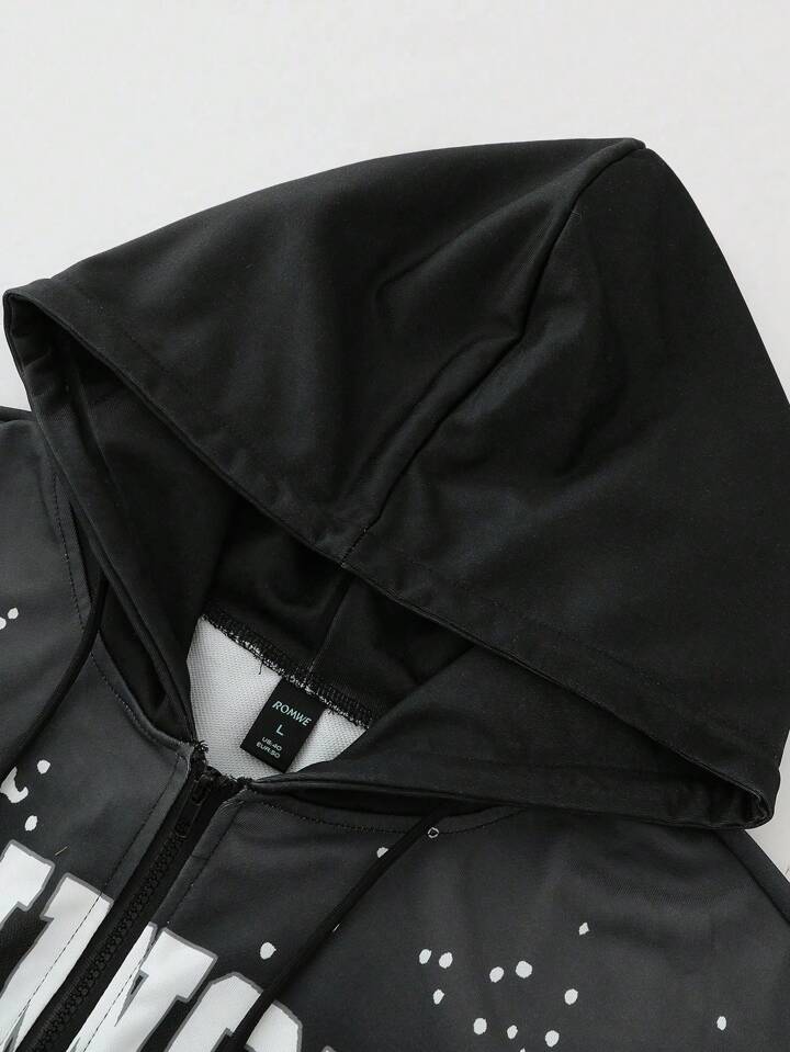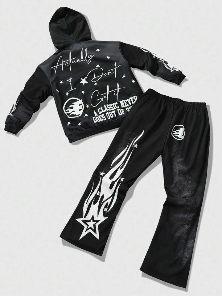 Street Life Conjunto de sudadera con capucha y pantalones con impresión de letras para hombres