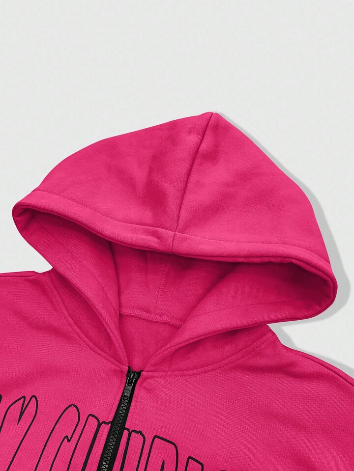 Street Life Sudadera con capucha rosa con cremallera y estampado de letras para hombre