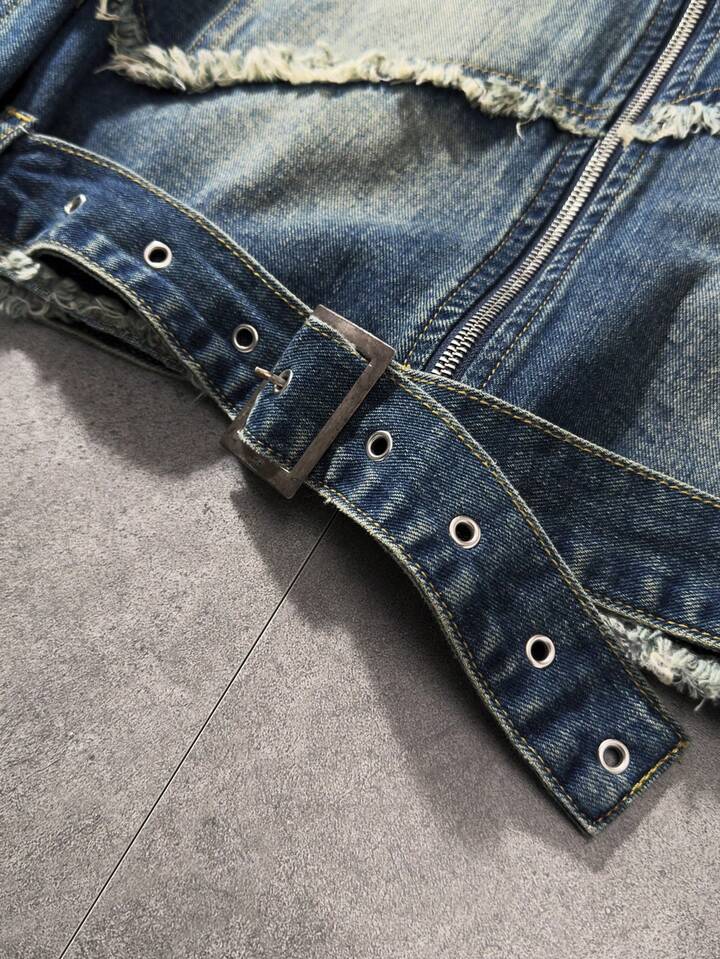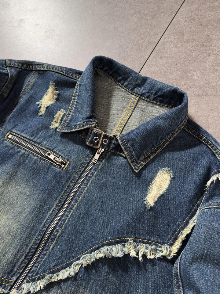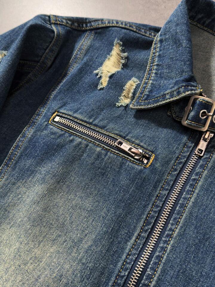 Street Life Chaqueta vaquera casual con cremallera y mangas largas desgastada para hombres