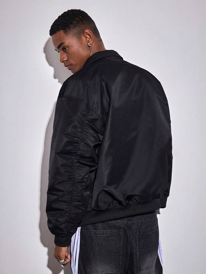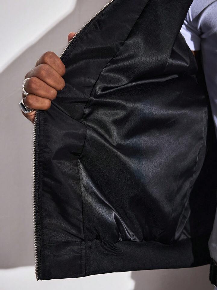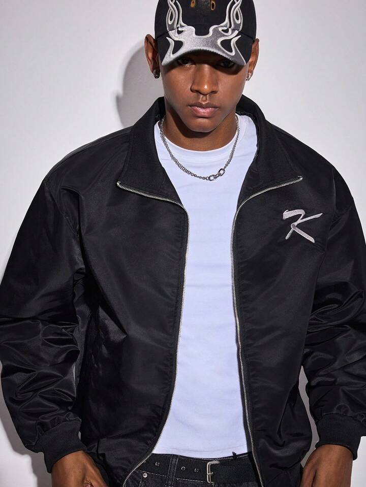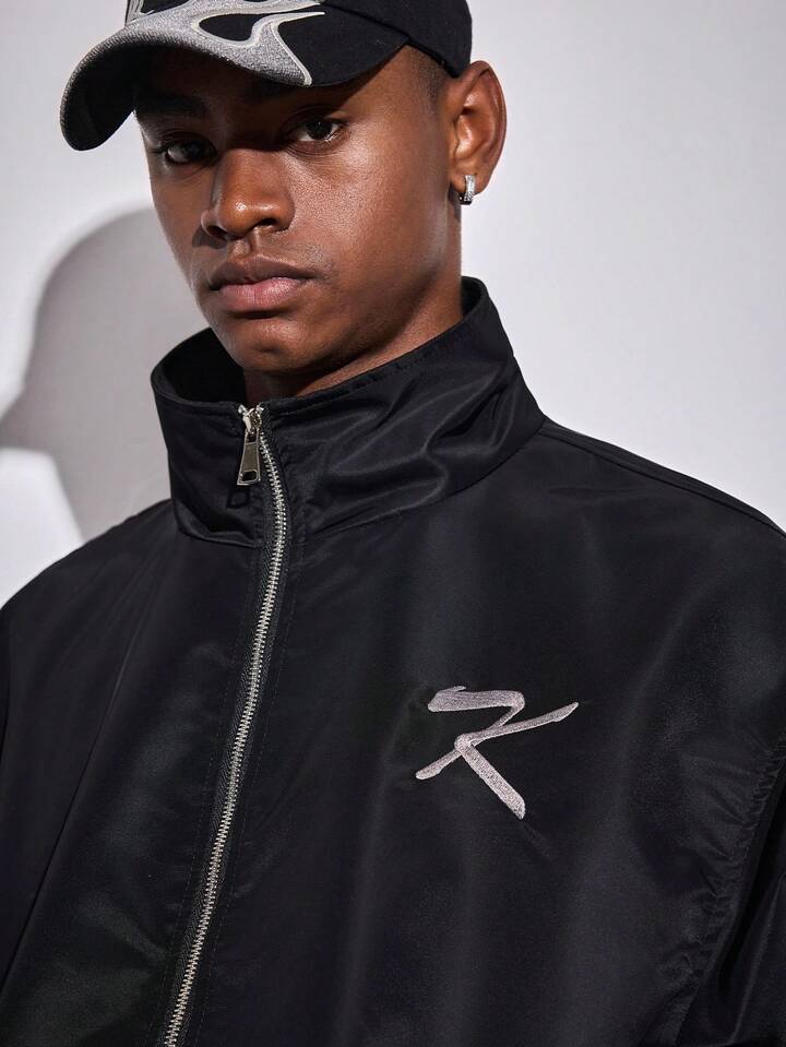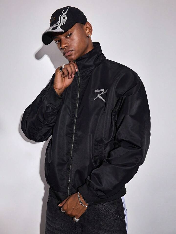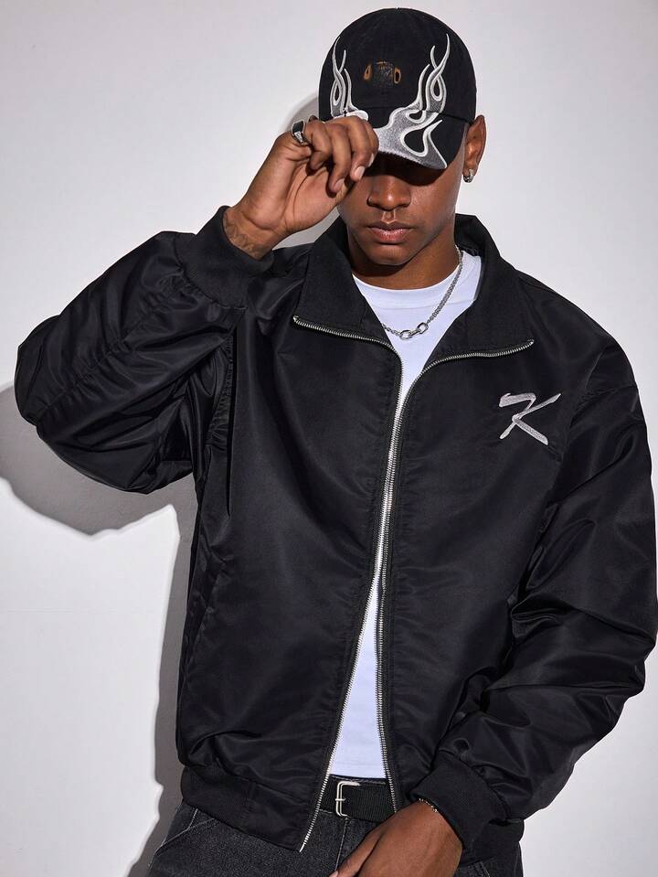 Street Life Chaqueta casual con cremallera y cuello bordado de manga larga para hombre
