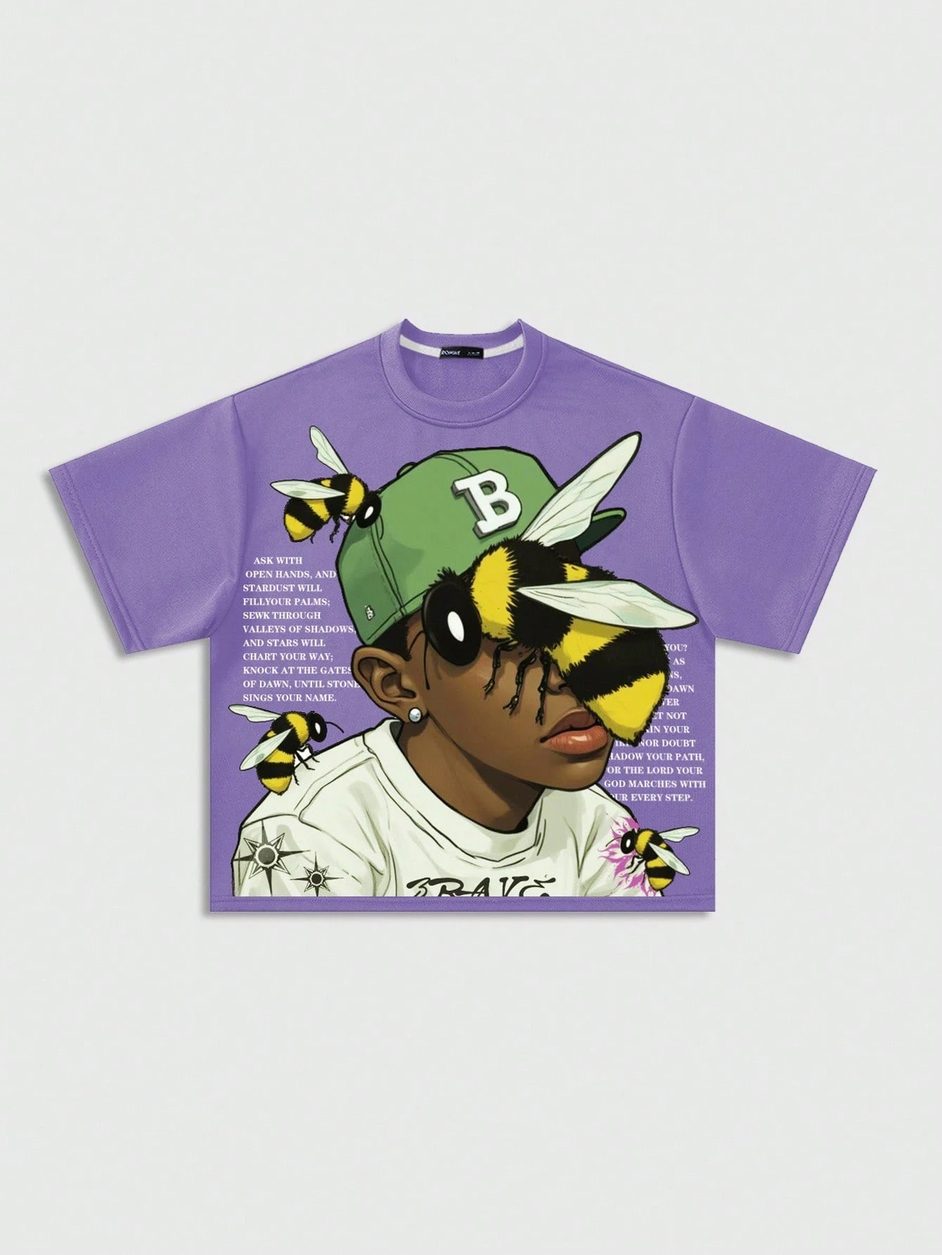 Street Life Camiseta de hombre de estilo corto, suelta y de hombros caídos con estampado