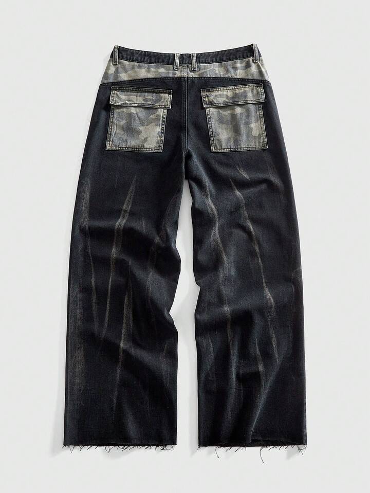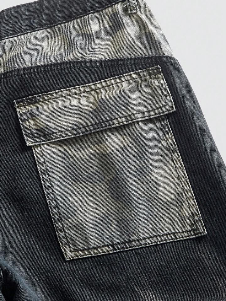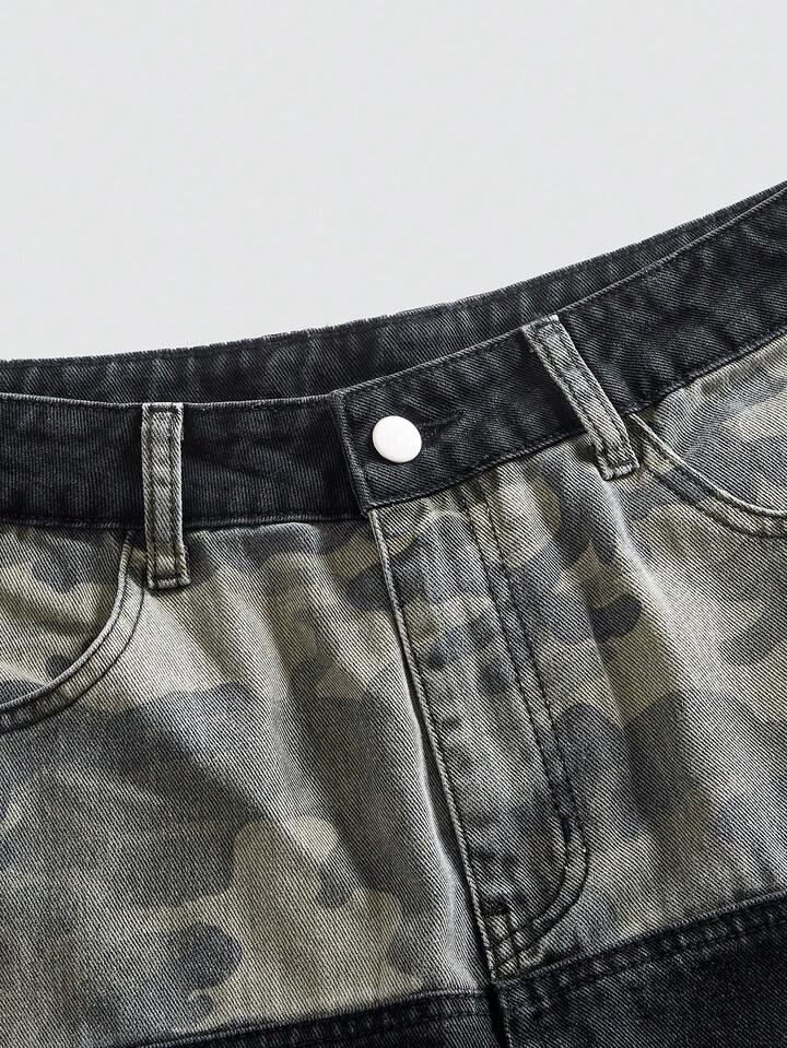 Street Life Jeans de mezclilla holgados con parches de camuflaje para hombre