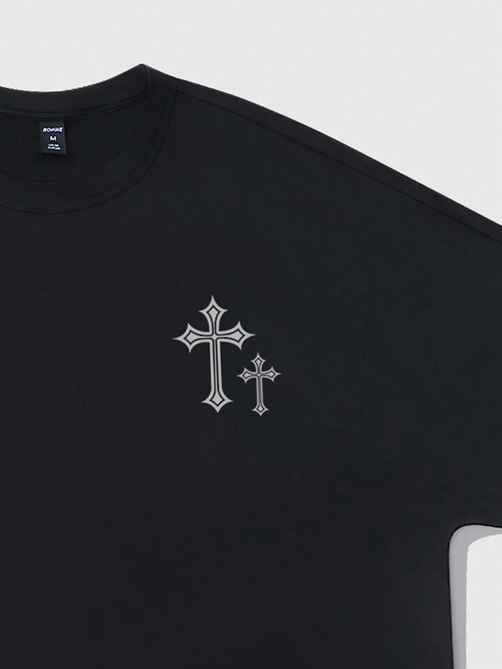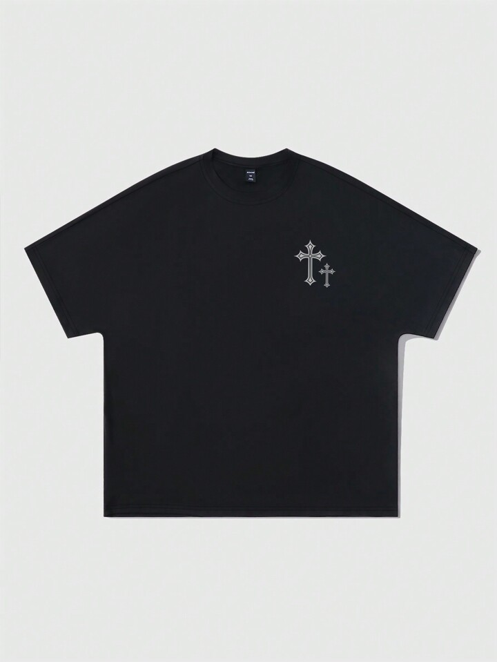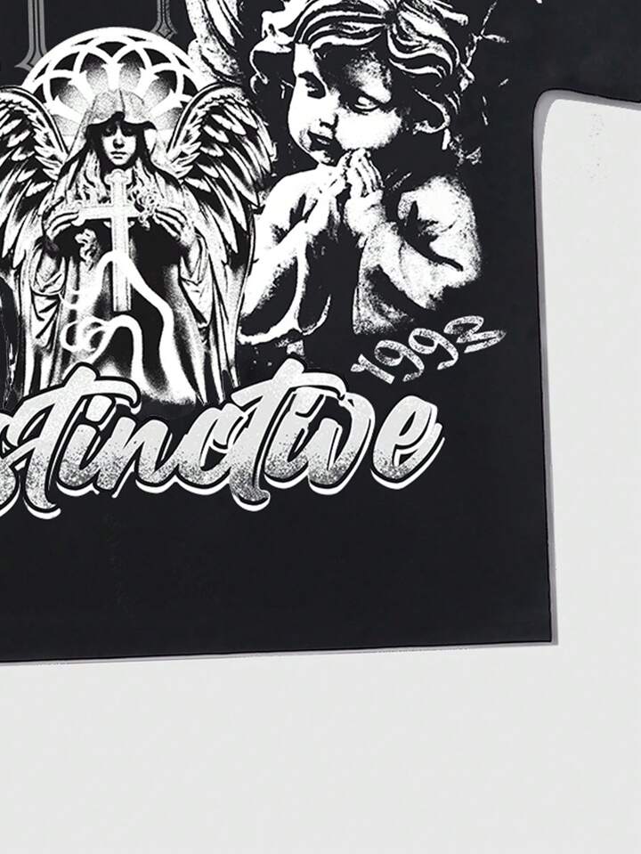 Street Life Camiseta de manga corta de corte holgado con gráfico religioso impreso, estilo vintage para hombre