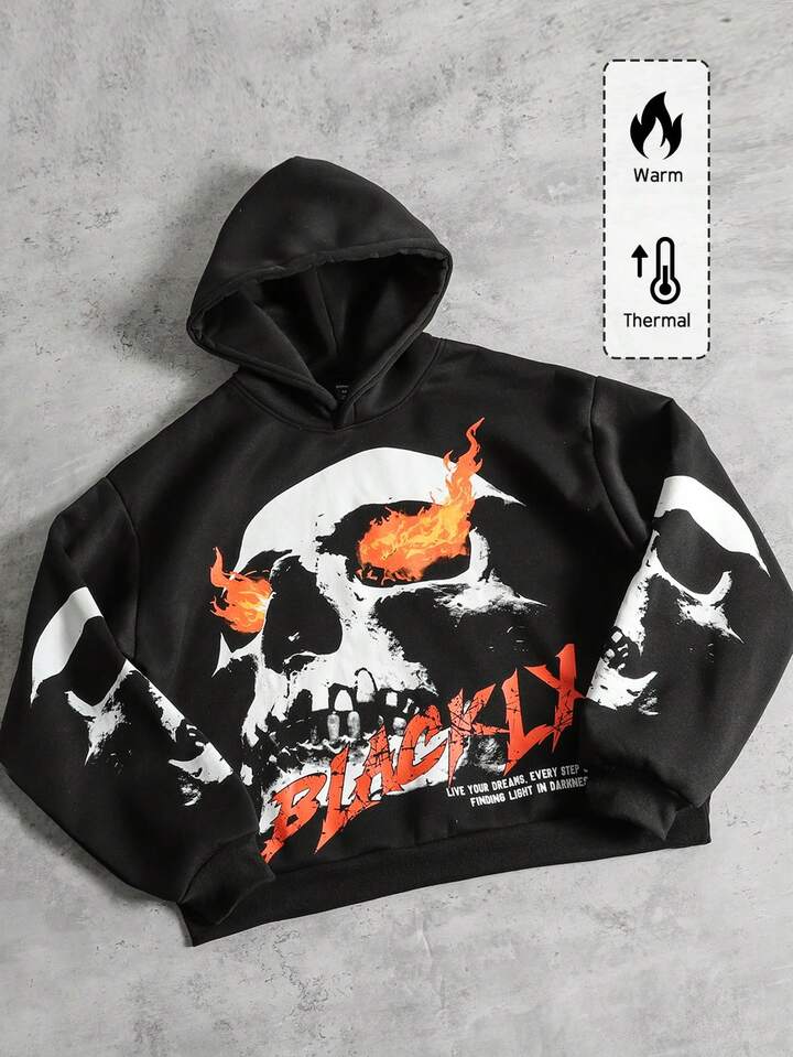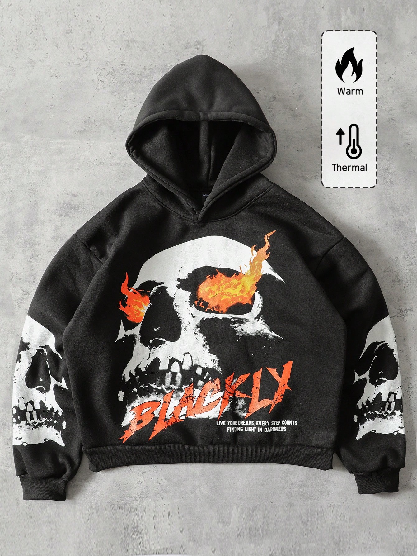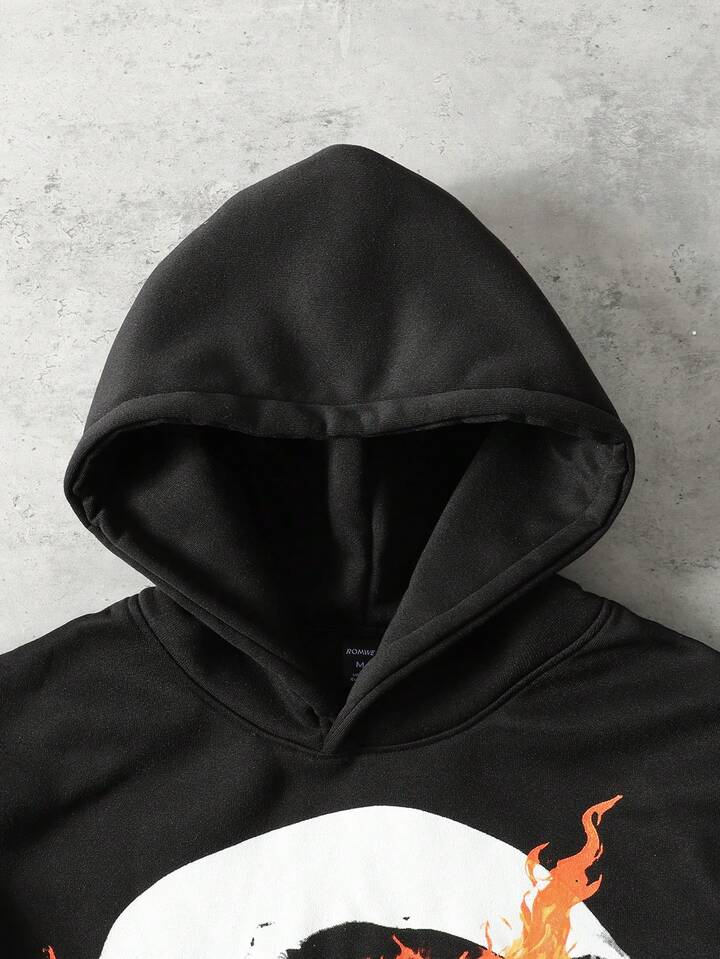 Street Life Sudadera con capucha de corte holgado con estampado gráfico para hombre, estilo callejero retro