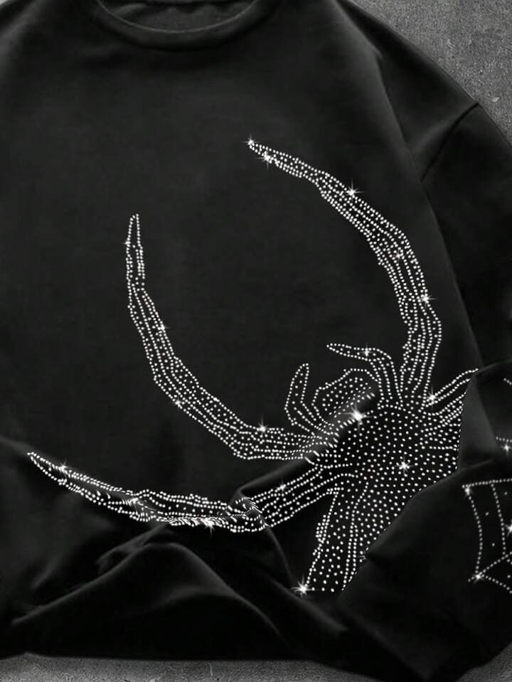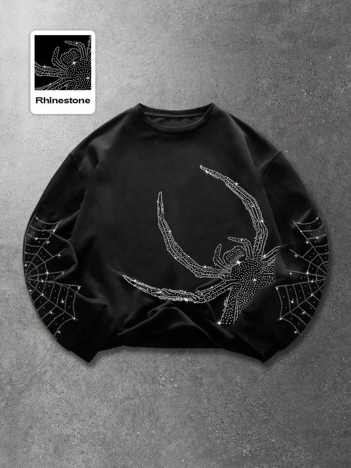 Street Life Sudadera holgada para hombre con gráfico de araña con diamantes brillantes