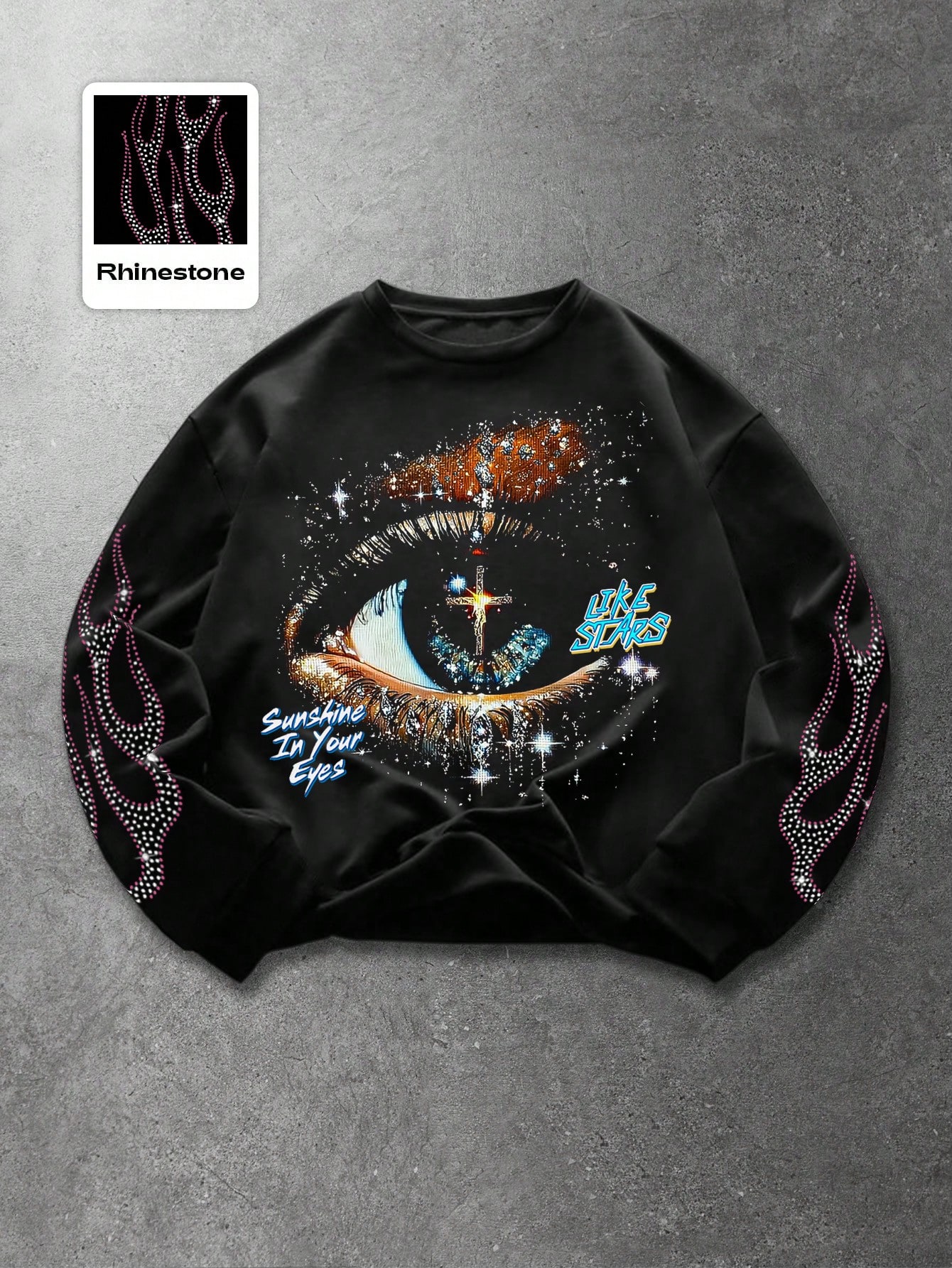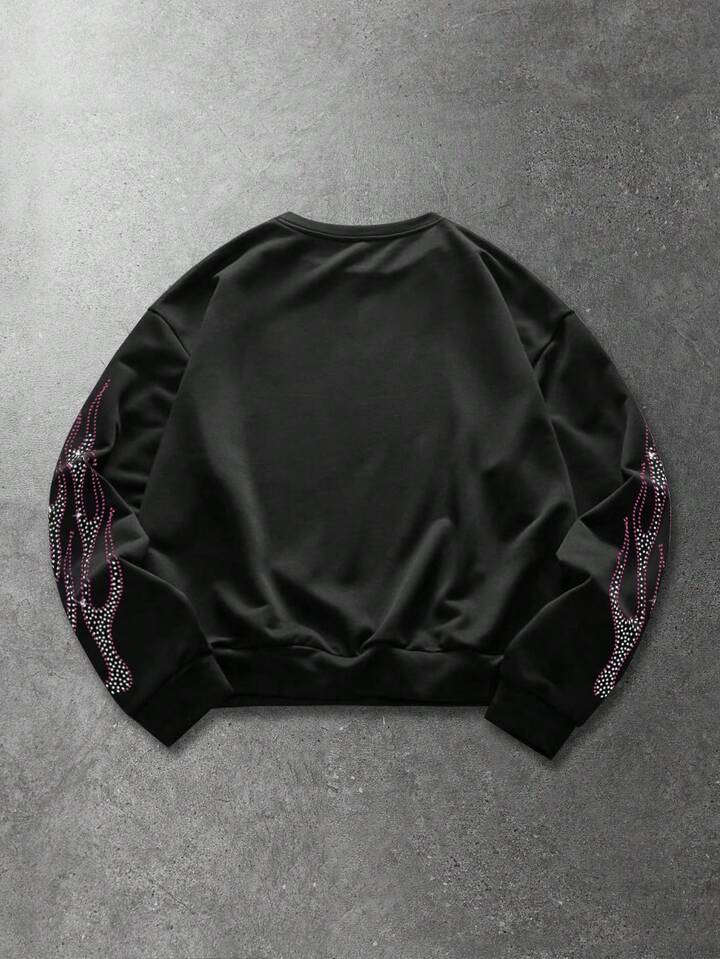 Street Life Sudadera holgada para hombre con estampado de llamas y diamantes brillantes